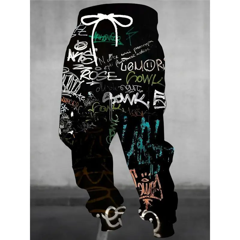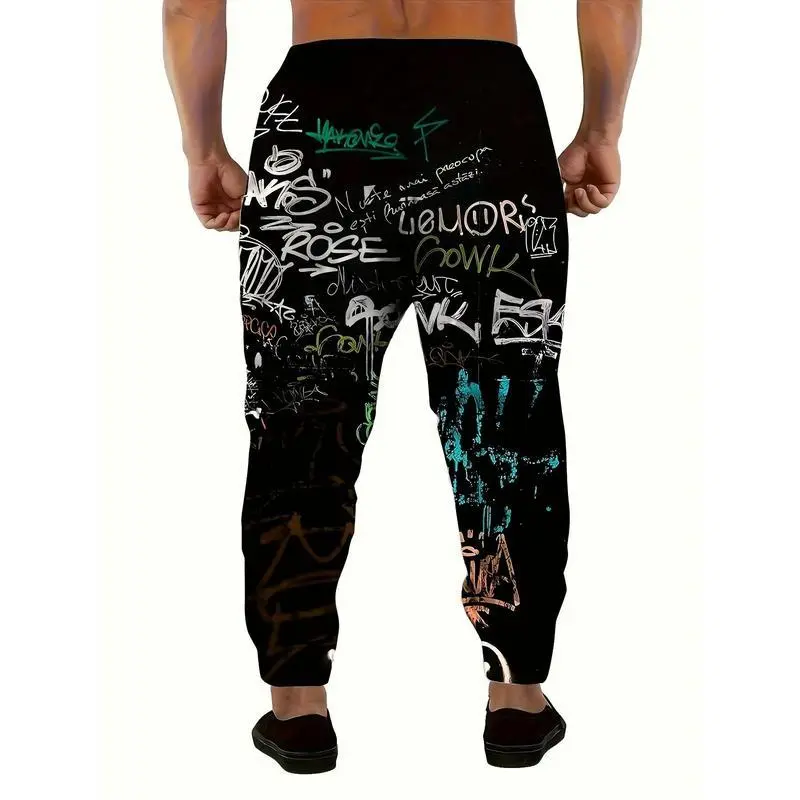 Shiyi Trading Men's 3D Graffiti Casual Polyester Sweatpants with Drawstring Pockets Slight Stretch Knit Fabric All Over Regular Fit Joggers Mixed Color