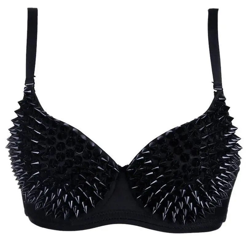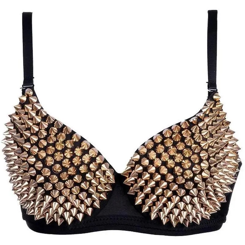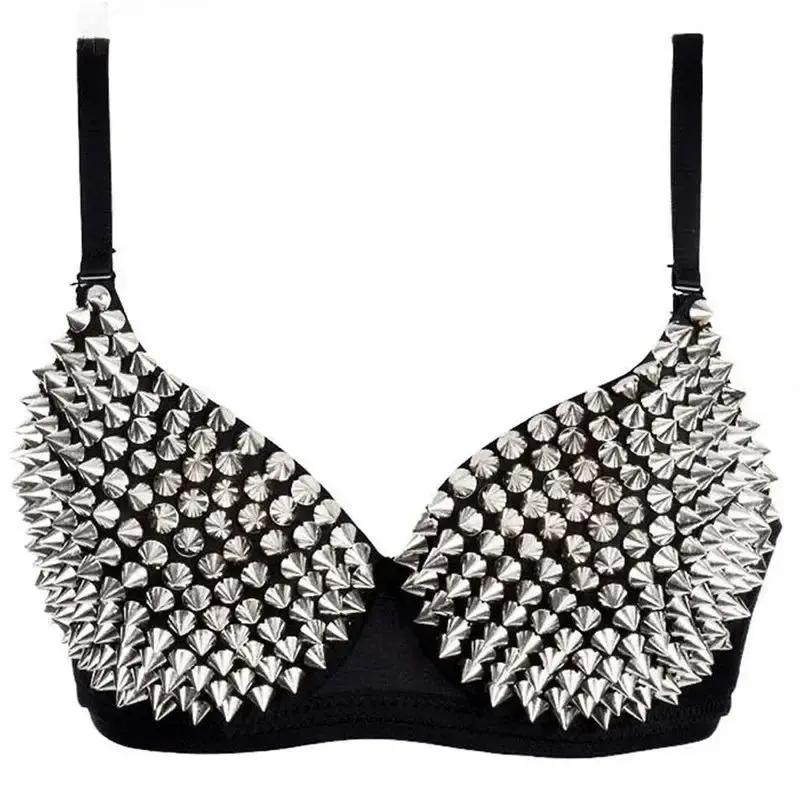 Silver Punk Push Up Bra with Spike Rivets, Women's Edgy Corset Top for Clubwear, Dance Performance & Gothic Lingerie, Comfortable Fashion Bustier for Daily Wear