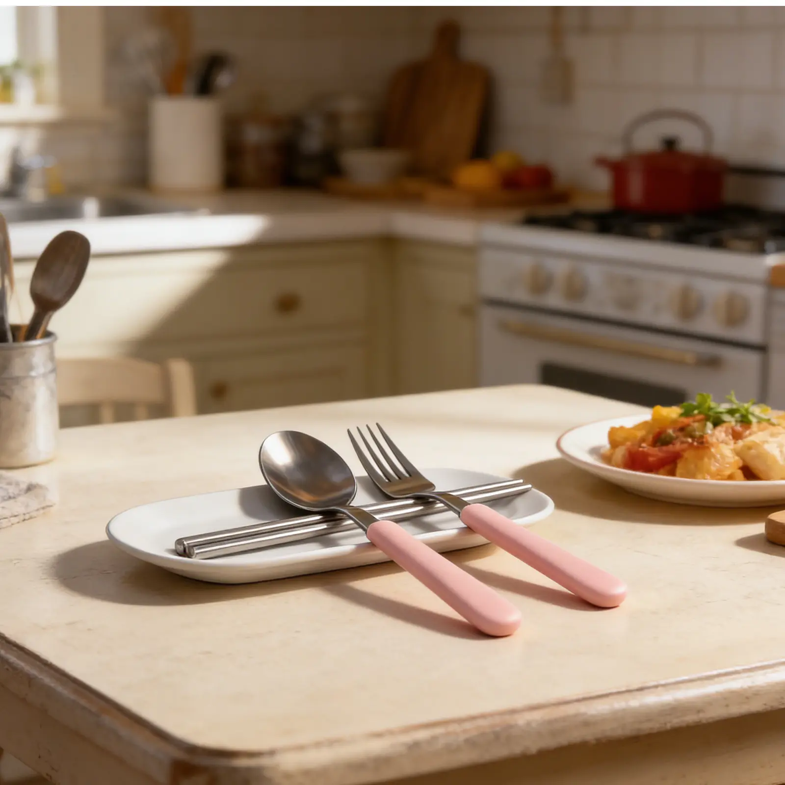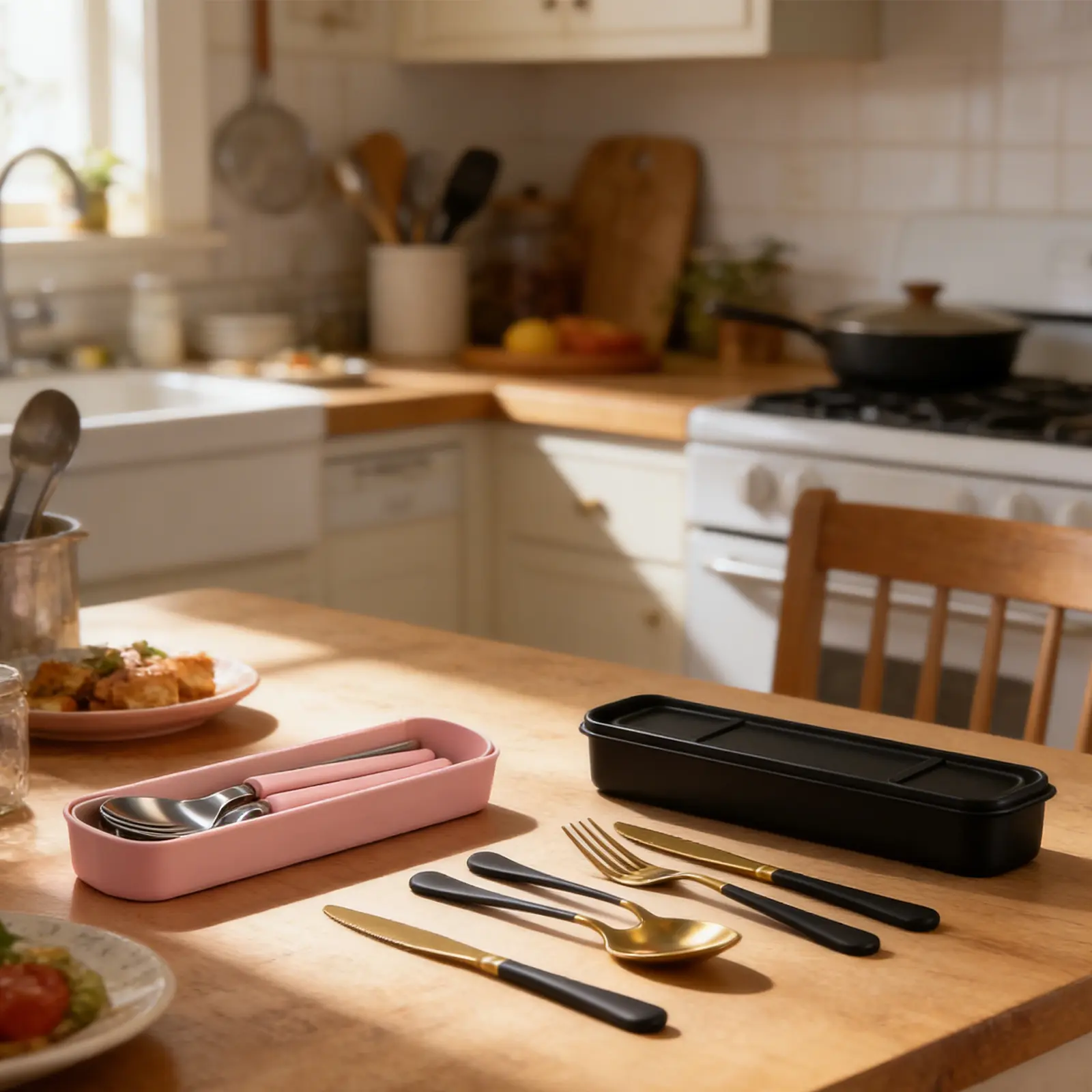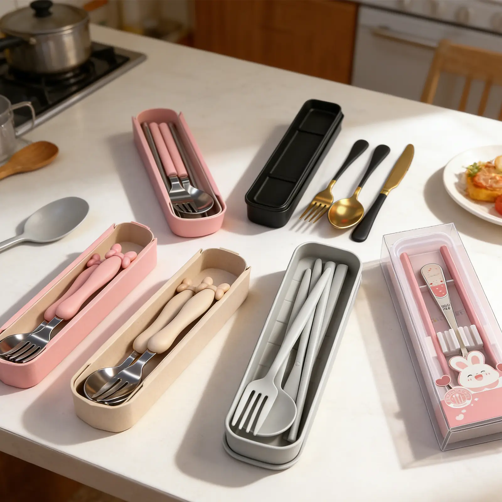 This 6-set, 15-piece heavy-duty stainless steel cutlery set includes steak knives, forks, and spoons. It is dishwasher safe, BPA-free, food-safe, and perfect for toddler self-feeding training, on-the-go meals, daycare, preschool, picnics, and family outings.