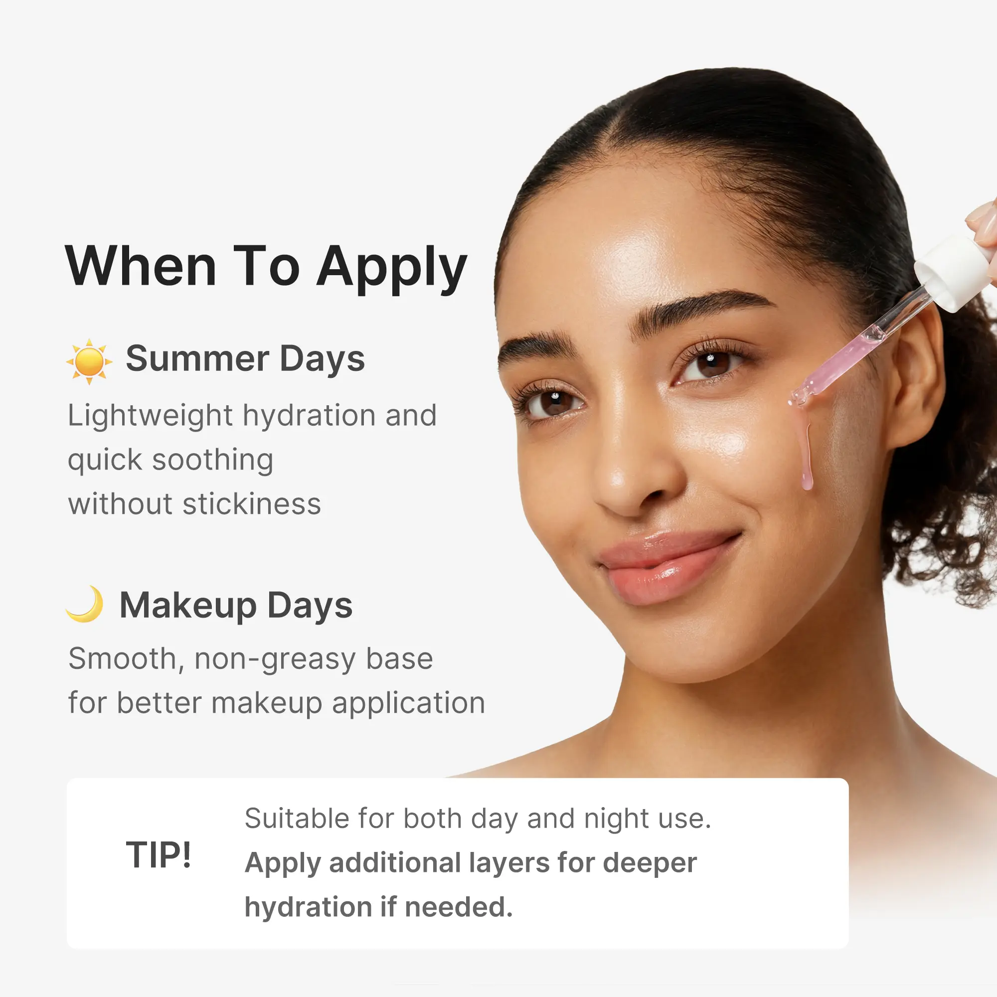 Low-irritation, lightweight formula designed for daily use to help soothe heat-stressed skin and improve overall skin texture without heaviness.