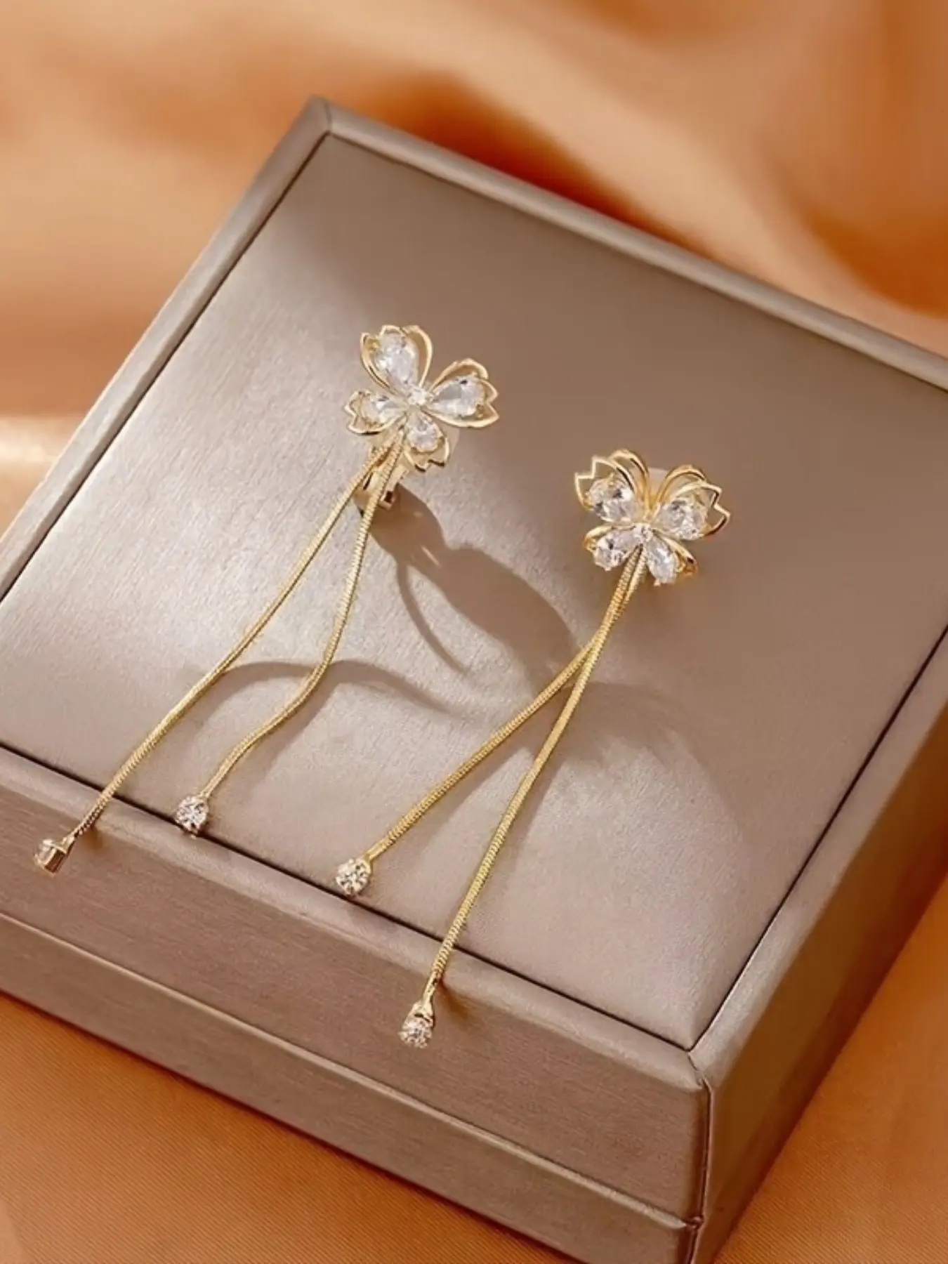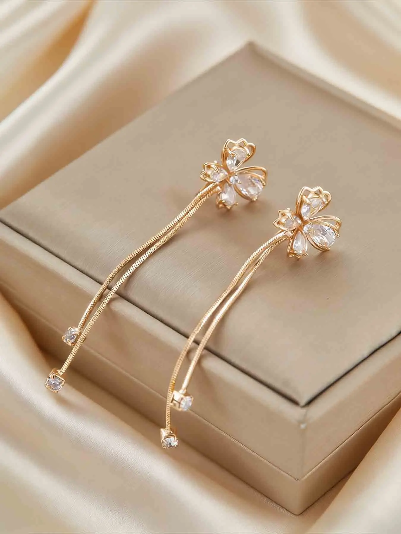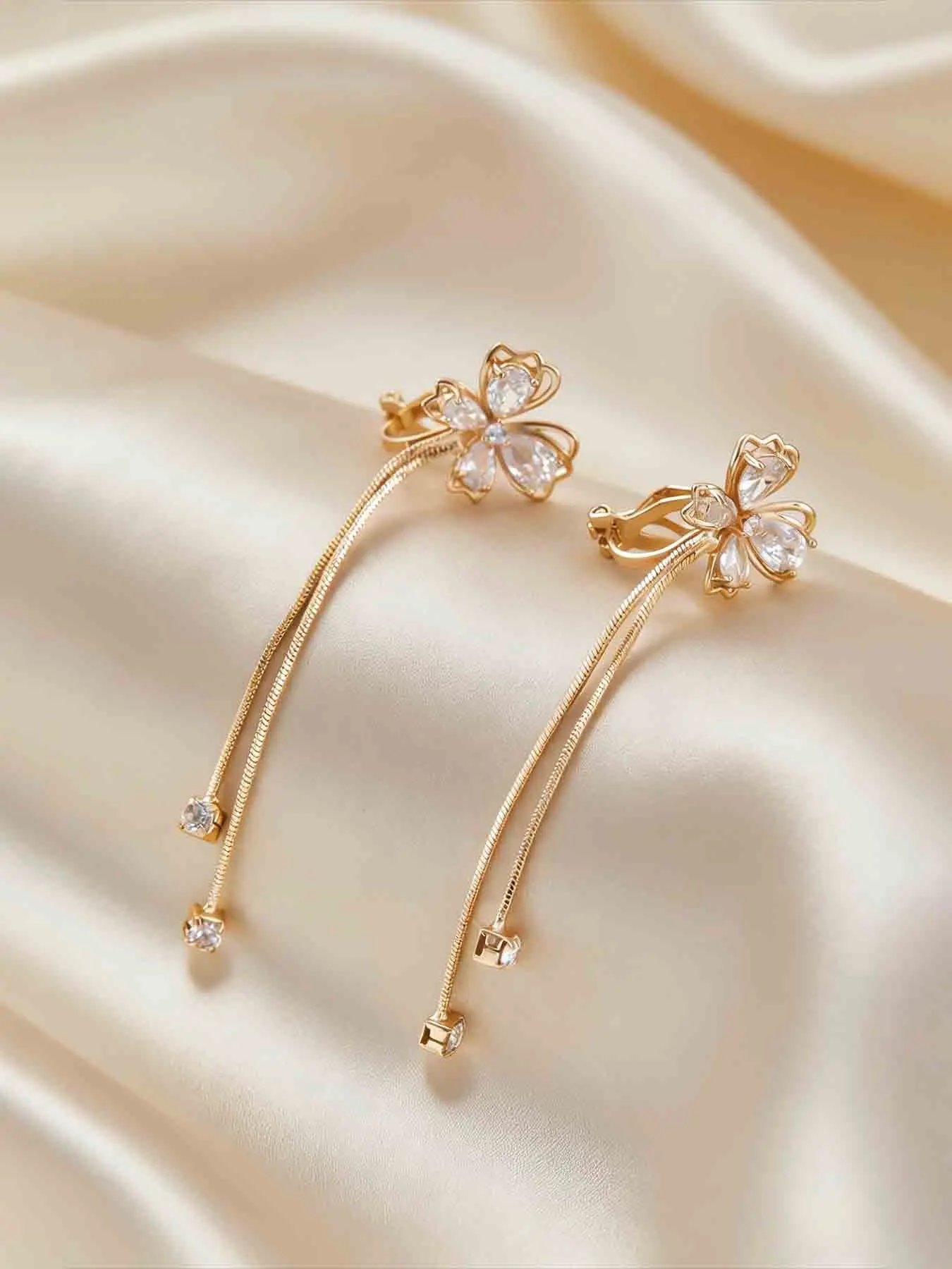 Fashion Sweet Zircon Butterfly Long Dangle Ear Cuffs, No Piercing Simple Design Women's Elegant Versatile Party Vacation Earrings