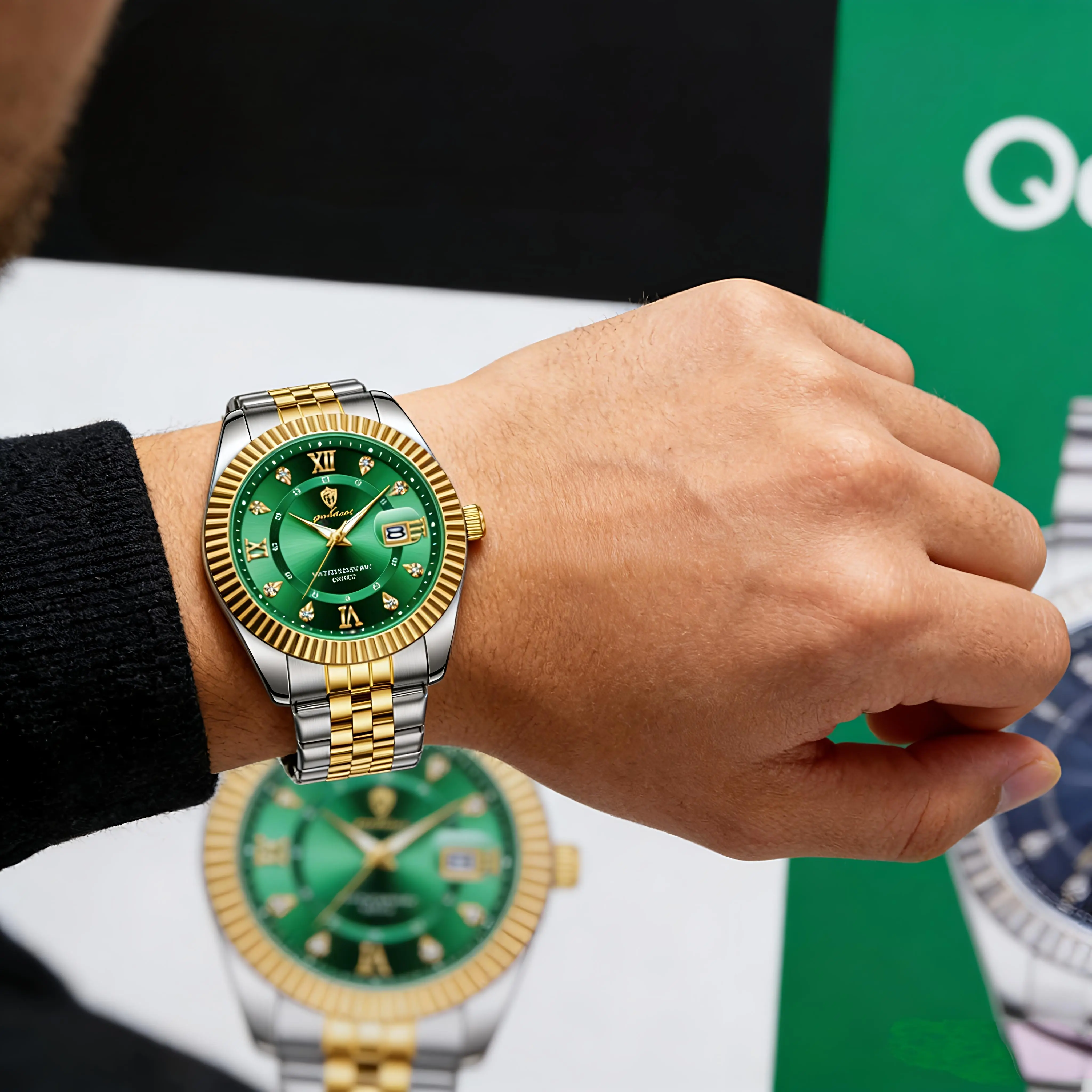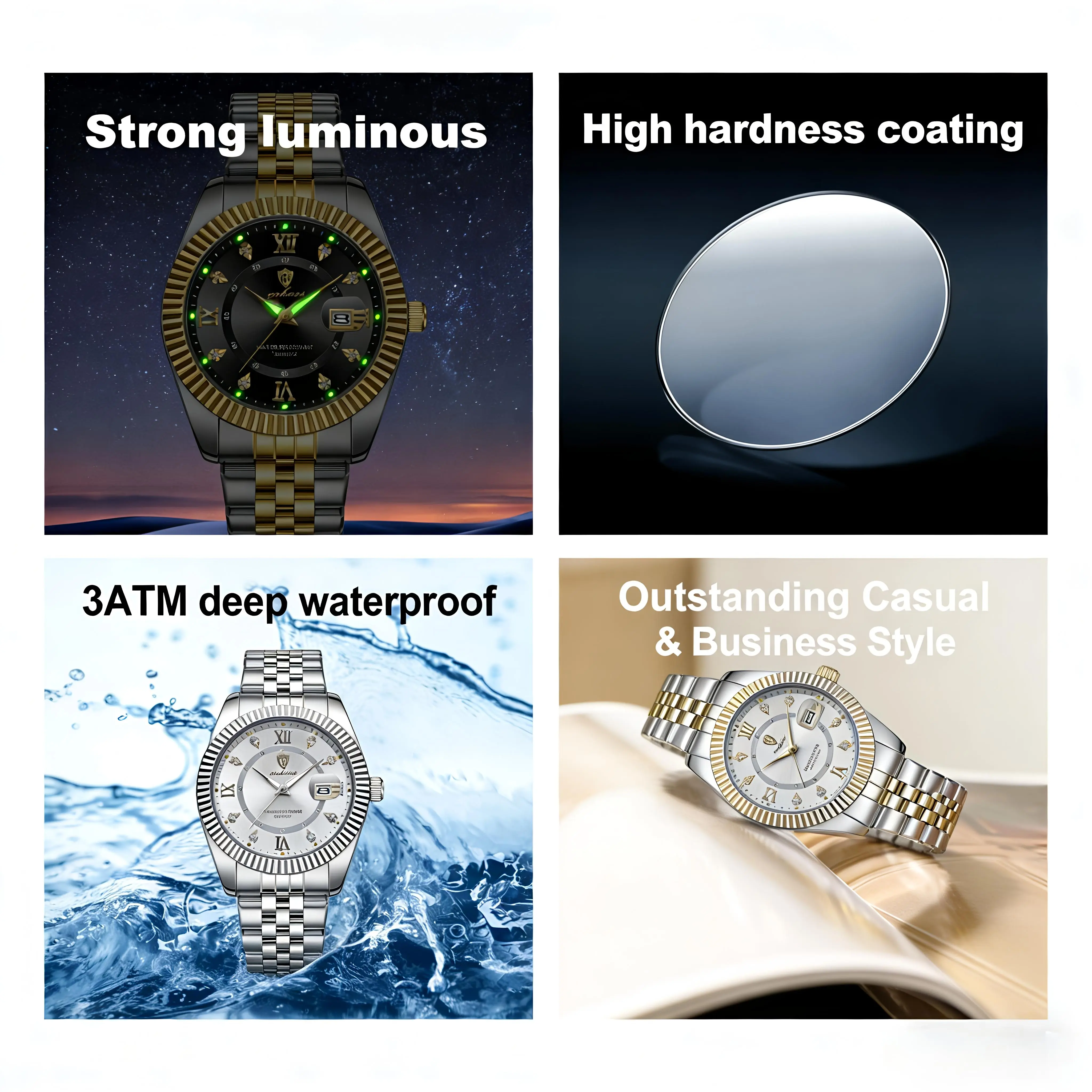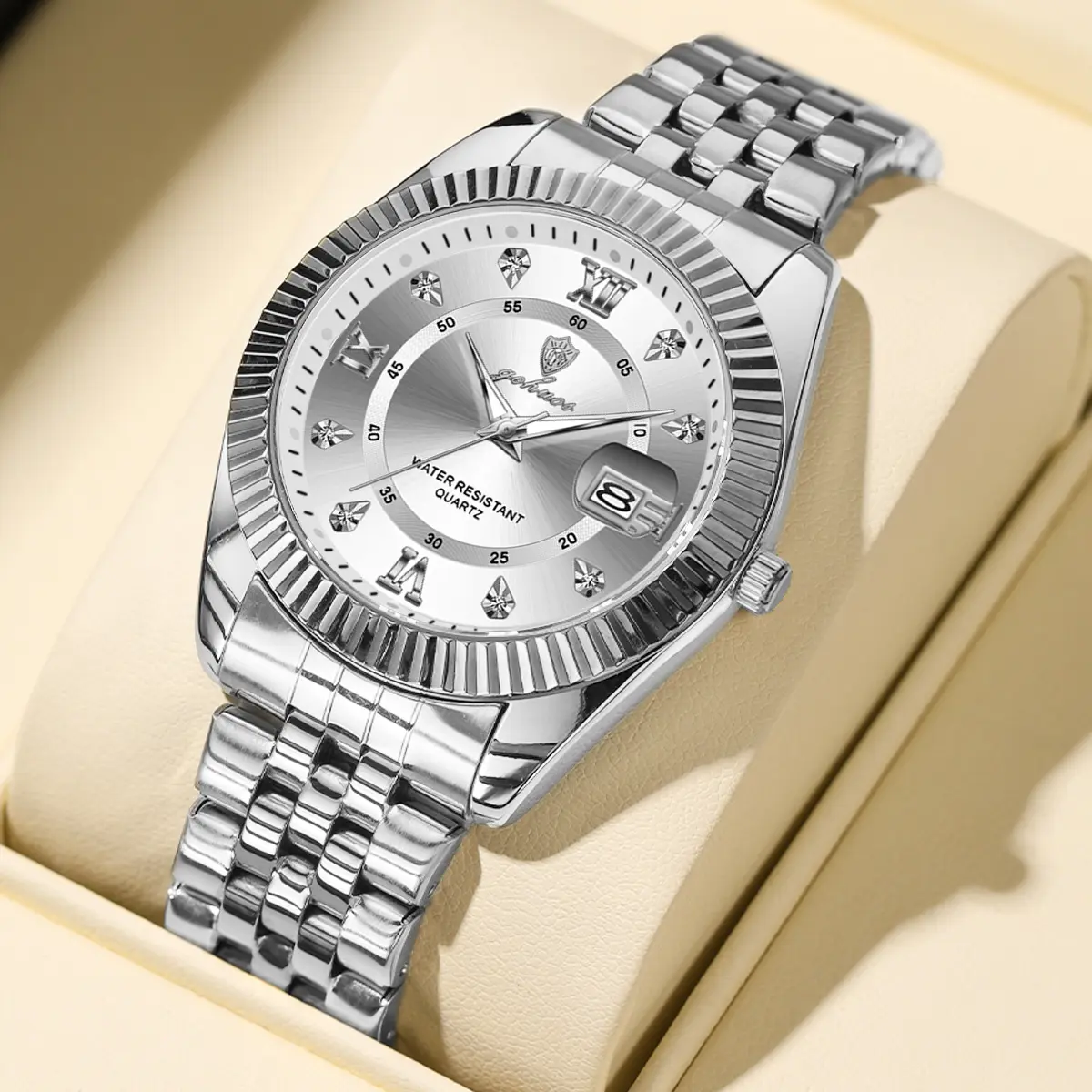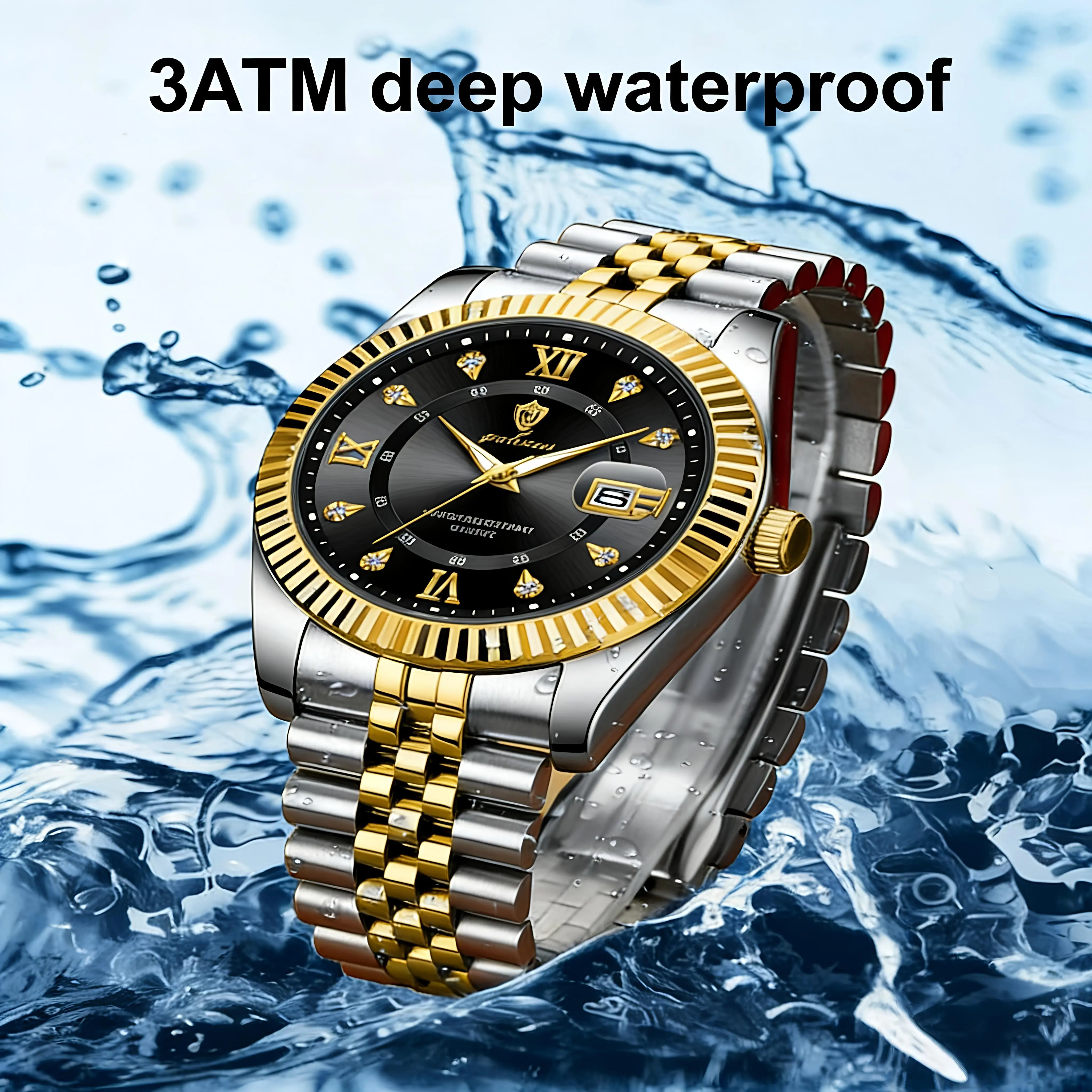 Elegant Design- Log-Style Design: Timeless luxury with a serrated rotating bezel and diamond-accented dial.- Roman Numerals: Sophisticated, masculine vibe for business meetings, date nights, and everyday wear.