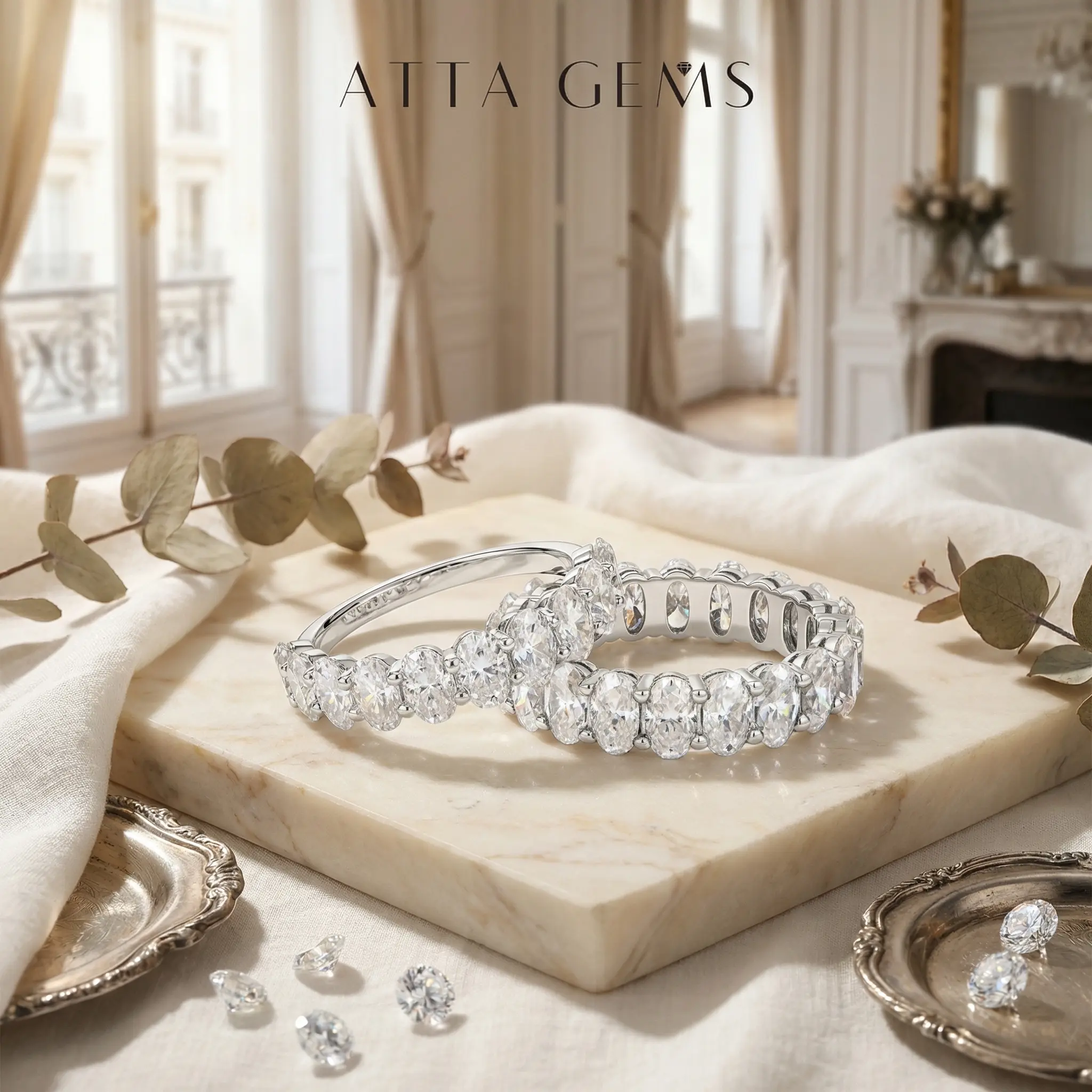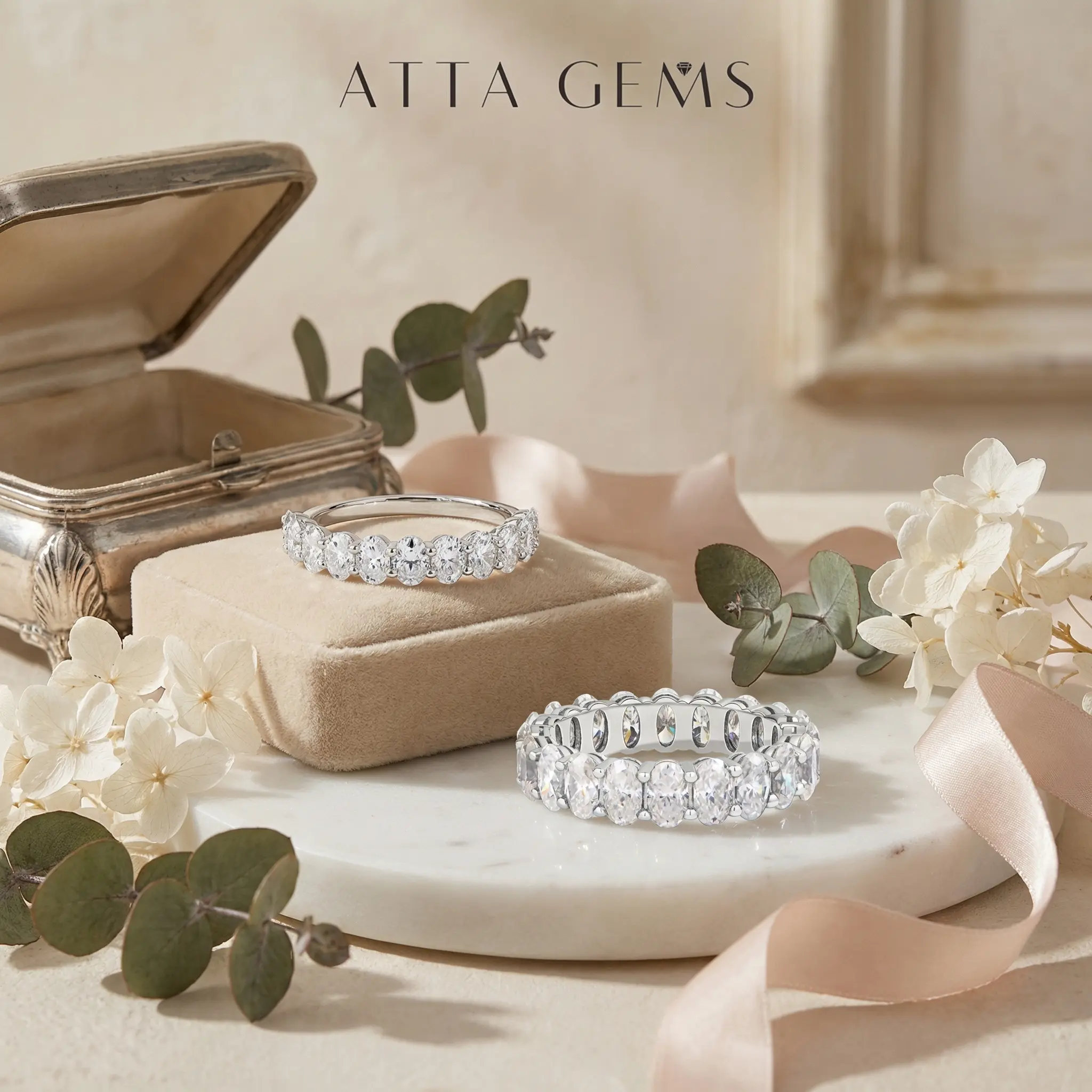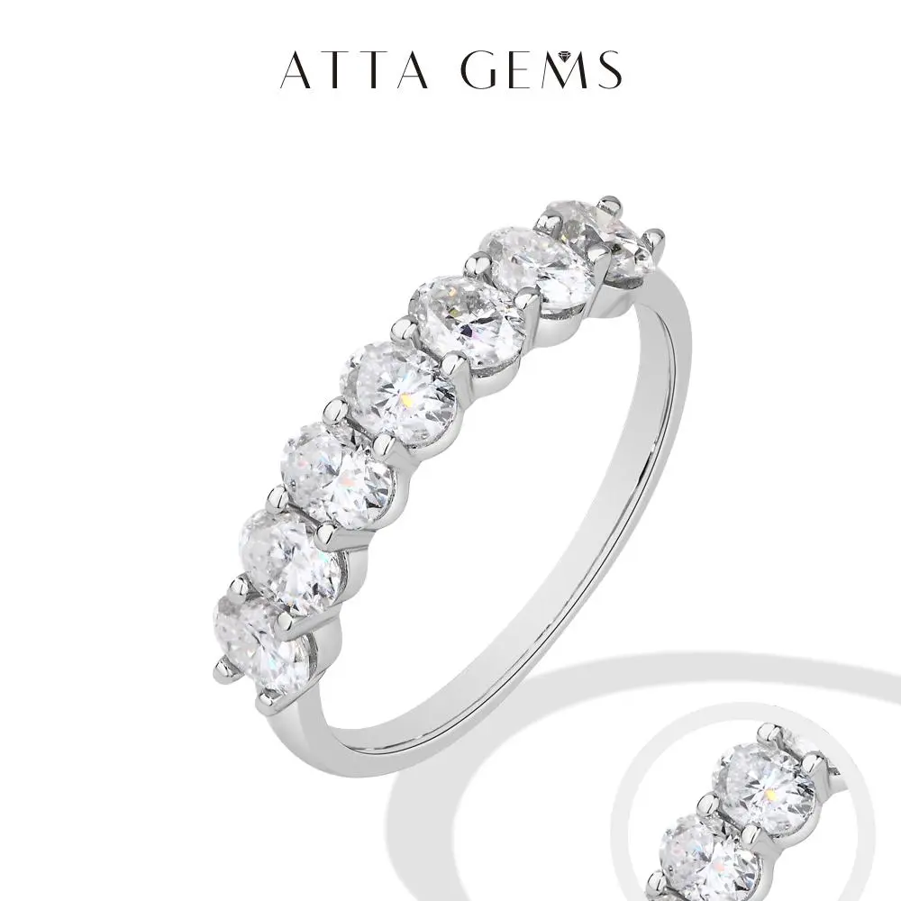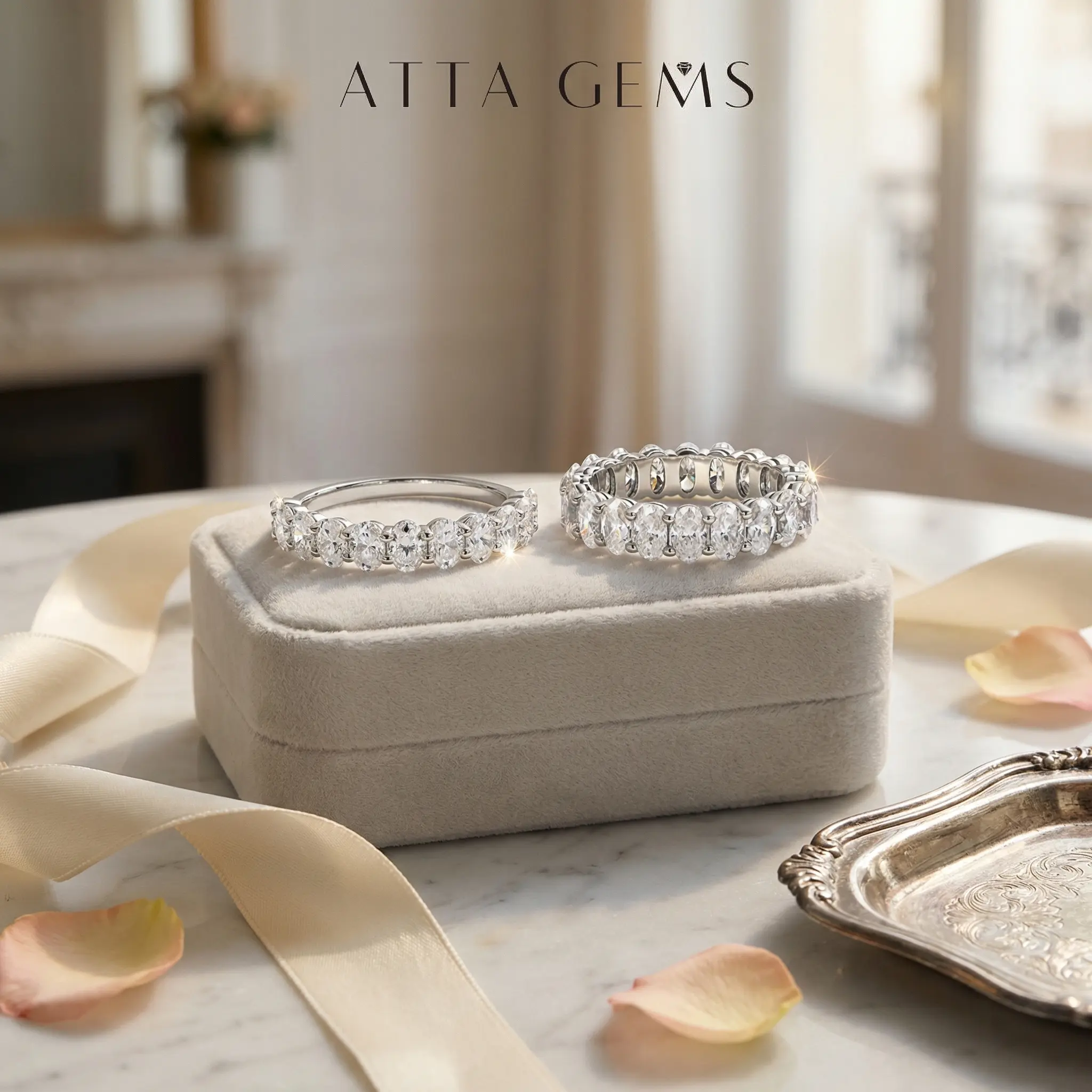 ATTAGEMS Oval Cut 1.8CT Half Eternity Band D VVS1 Synthetic Moissanite Ring for Women copper 14K Gold Plated Wedding Matching Band Fashion Jewelry Gift RU01