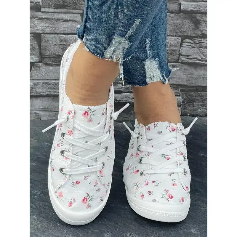 ��Unique Print��: The ditsy floral pattern adds a vibrant and delightful touch, setting these sneakers apart from ordinary footwear options. ��Breathable Material��: Crafted from high-quality textile, these sneakers ensure optimal airflow, making them perfect for warm weather activities or long walks. ��Secure Fit��: Featuring a traditional laces fastening type, these shoes provide a customizable snug fit for enhanced stability during various activities. ��All-Season Wear��: These low top sneakers are designed for year-round use, adapting easily to different climates and activities without compromising on performance. ��Round Toe Shape��: The rounded toe design allows for natural toe movement and provides extra comfort for all-day wear, making them a reliable choice.