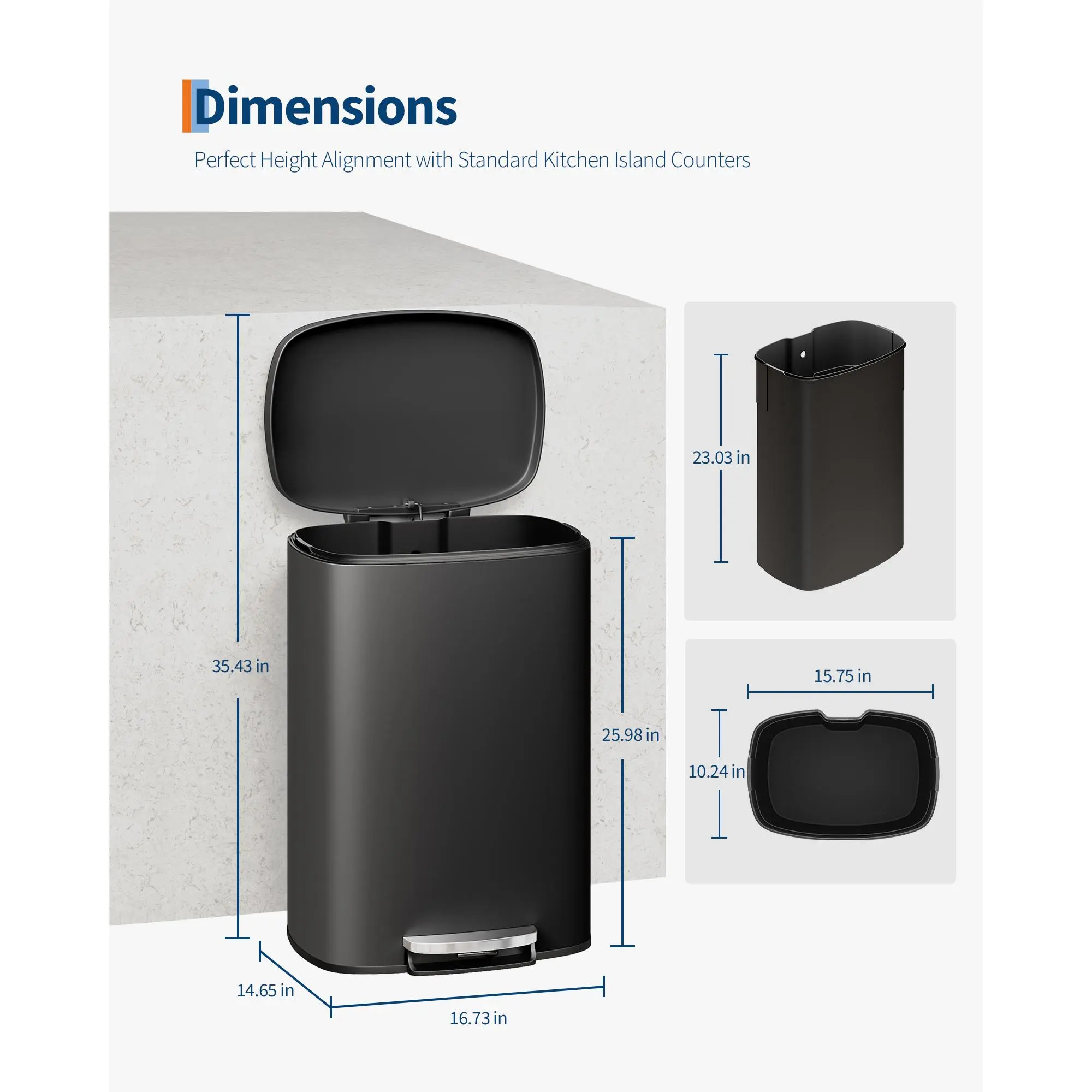 ·Generous 13.2 gallon (50 liter) capacity ideal for kitchen or office waste