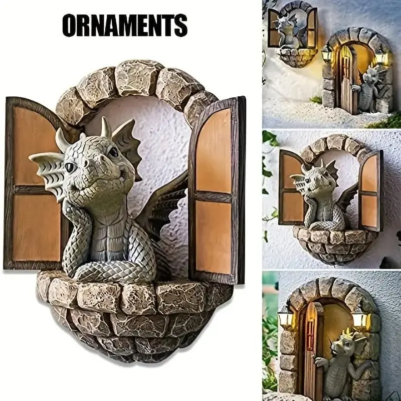 Creative Cartoon Dragon Design Garden Decor, Resin Dragon Statue, Outdoor Wall Decor for Garden Patio Yard, Unique Garden Ornament