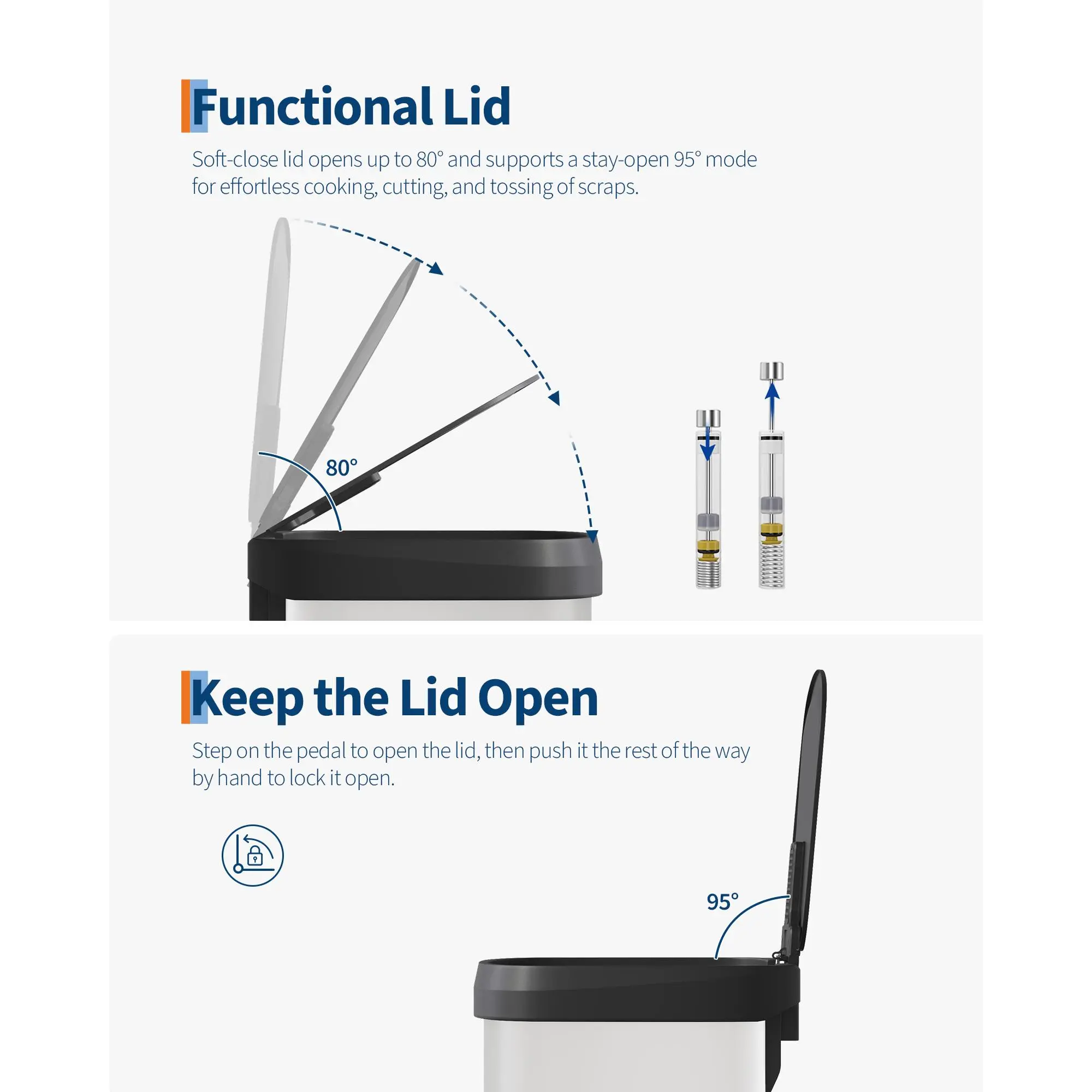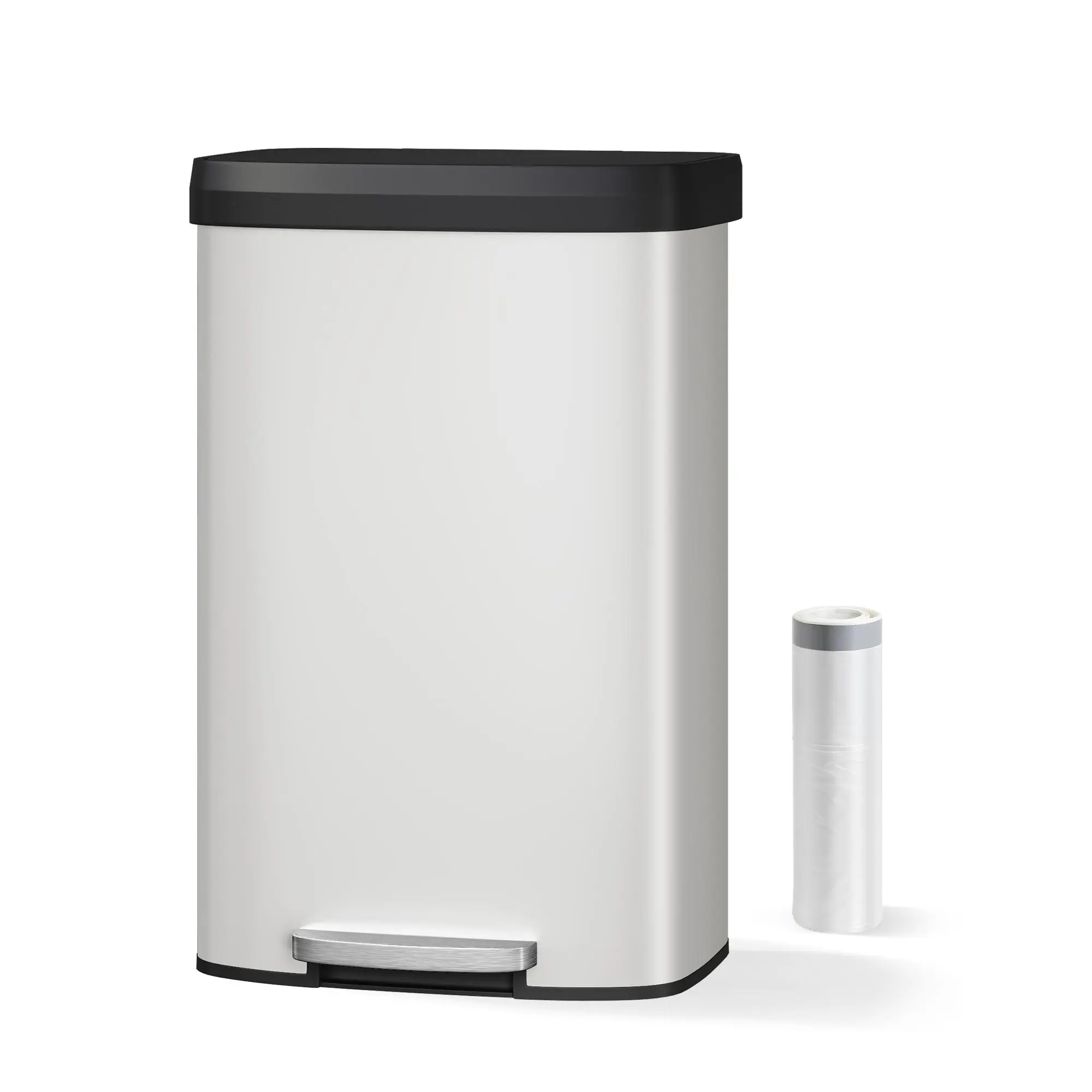 ·Integrated liner rim secures trash bags firmly, simplifying replacement and preventing slips.