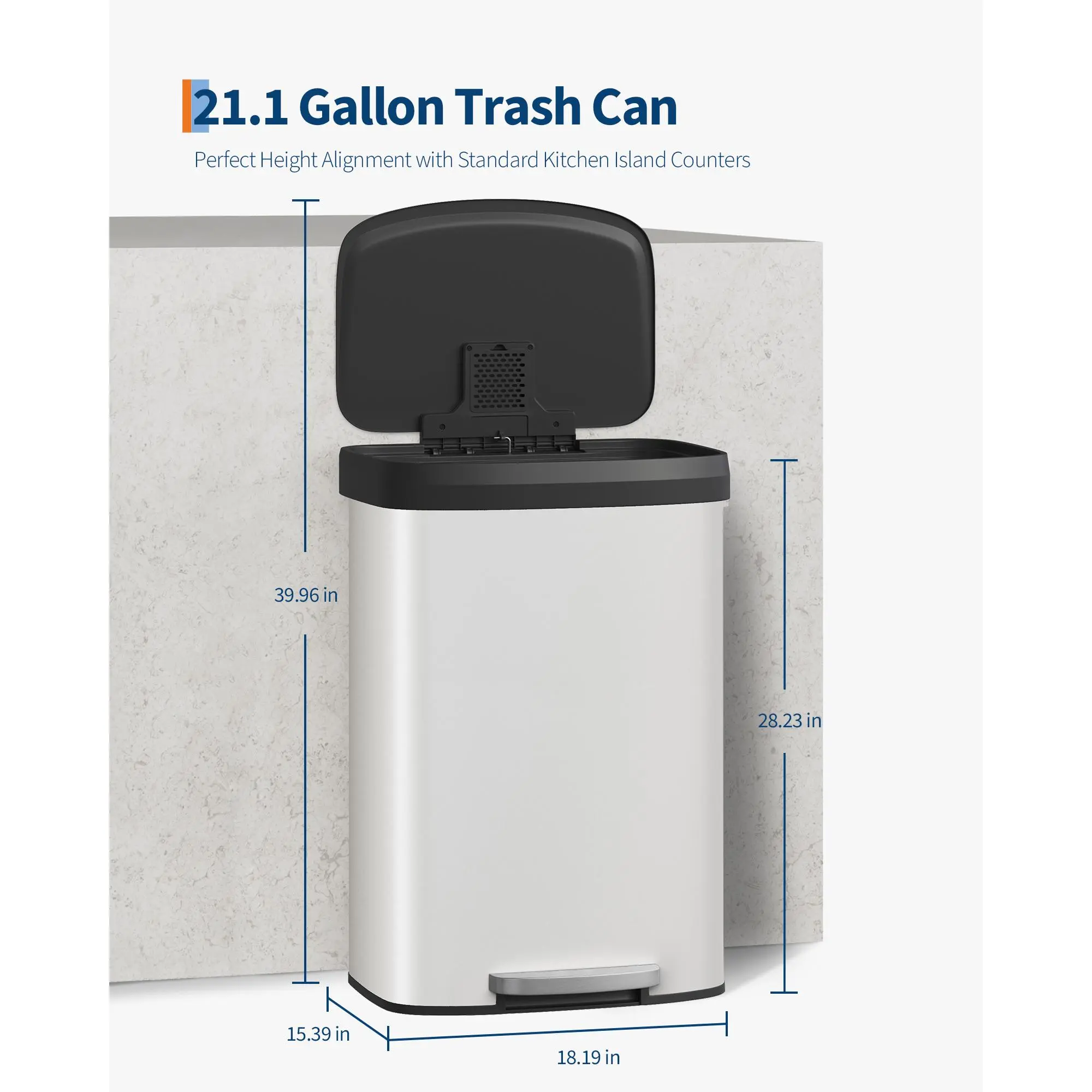 Enhance your kitchen, bathroom, or office with the 21 Gallon (80L) Stainless Steel Step Trash Can — a perfect blend of durability, functionality, and modern design. Crafted from quality stainless steel with a sleek silver finish, this large-capacity waste bin resists rust and fingerprints, maintaining a clean and polished look in any space.