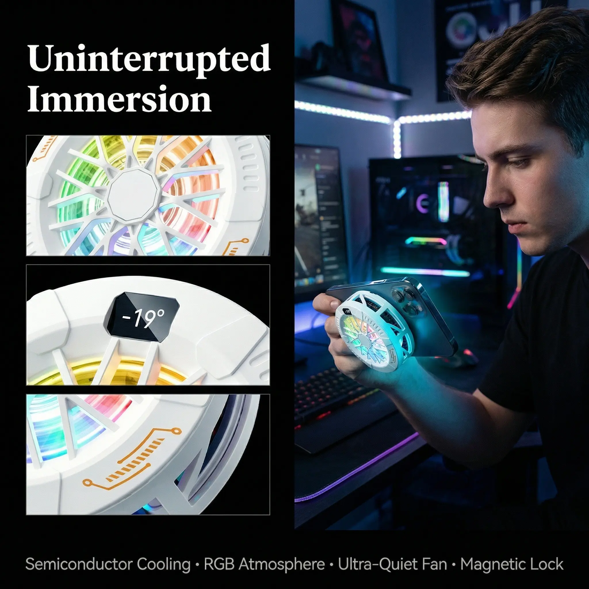 New Temperature Display Magnetic Semiconductor Phone Cooler, 2-In-1 Magnet + Back Clip Fast Cooling, Fits iPhone Samsung Huawei Oppo Vivo Android