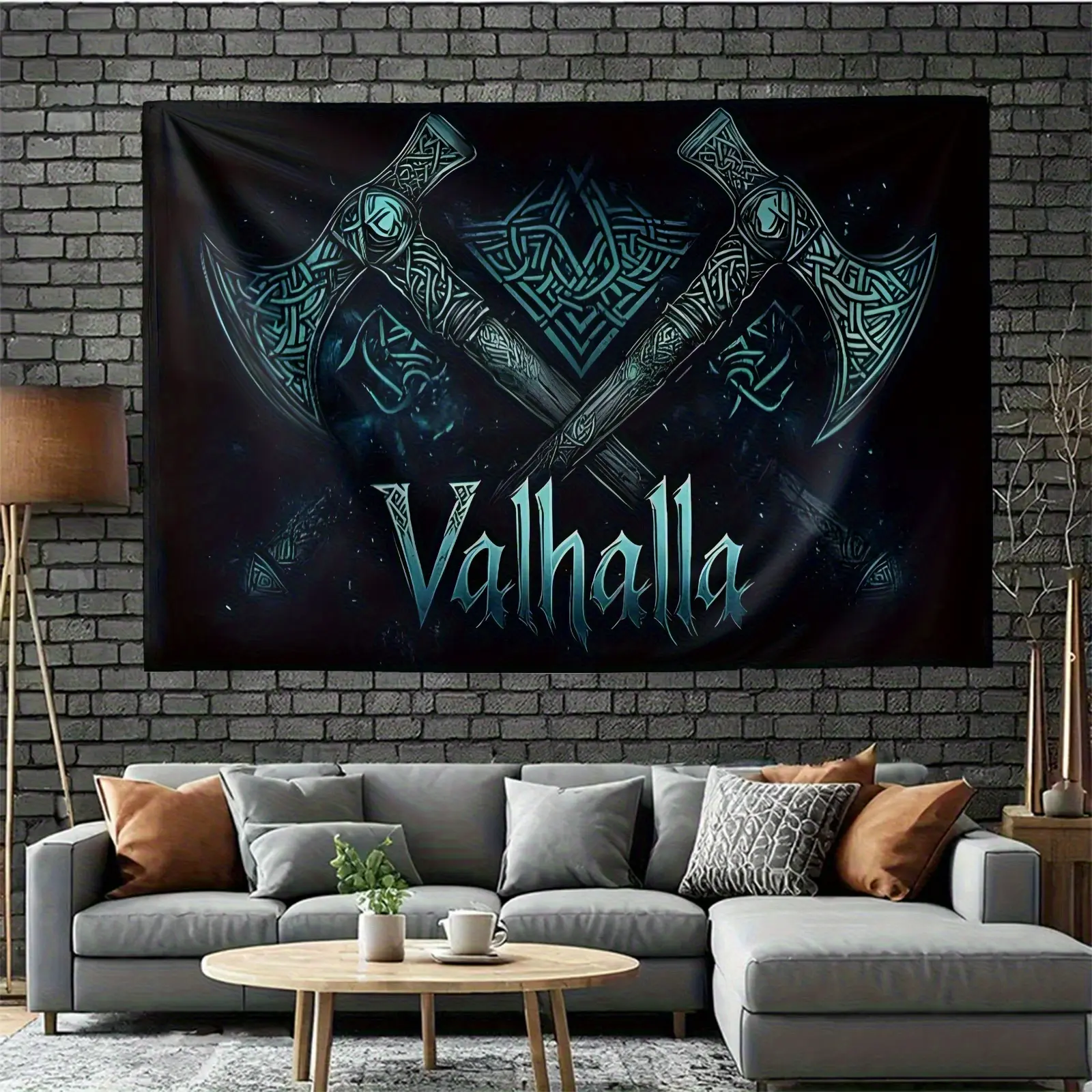 Fantasy Axe Theme Banner with Celtic Knots and Stars, Vibrant Blue Wall Art for Living Room Bedroom Office Party Backdrop, High-Quality Peach Beige Fabric Home Decor