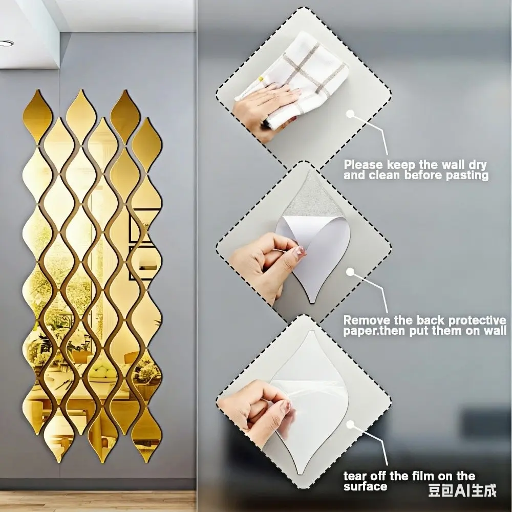 【Water Droplet Design】: Unique water droplet mirror stickers add a modern touch to any room decor.