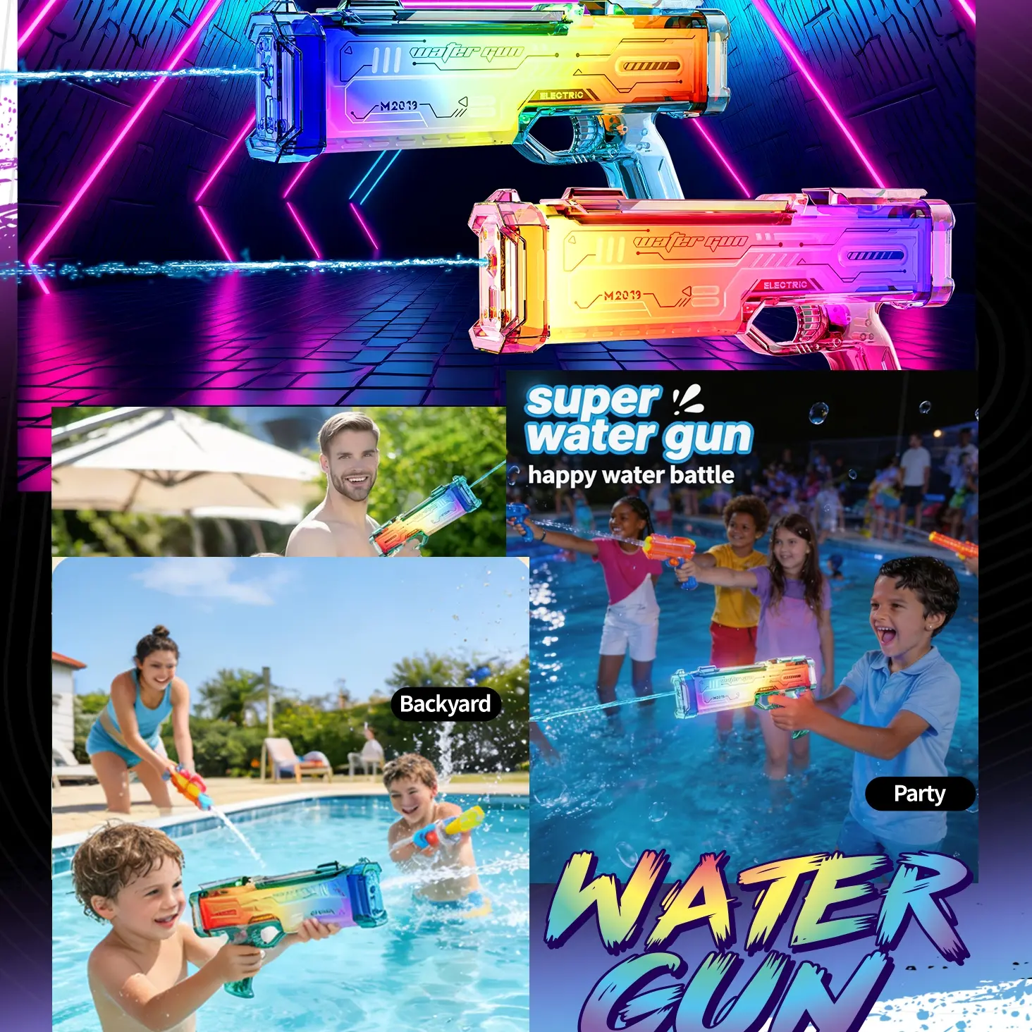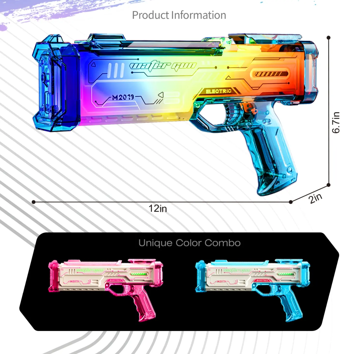 Turn every water fight into a next-level experience with this high-tech electric water blaster. Designed with vibrant LED lighting and realistic sound effects, it delivers an immersive and exciting play experience for both kids and adults.