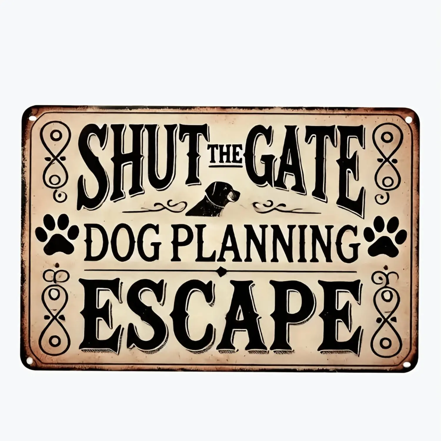 Dog Escape Plan - Retro and Chic Sign - Durable and Bendable Abs Material - Can Be Used Indoors and Outdoors - Perfect for Home, Shop, Office, Etc.