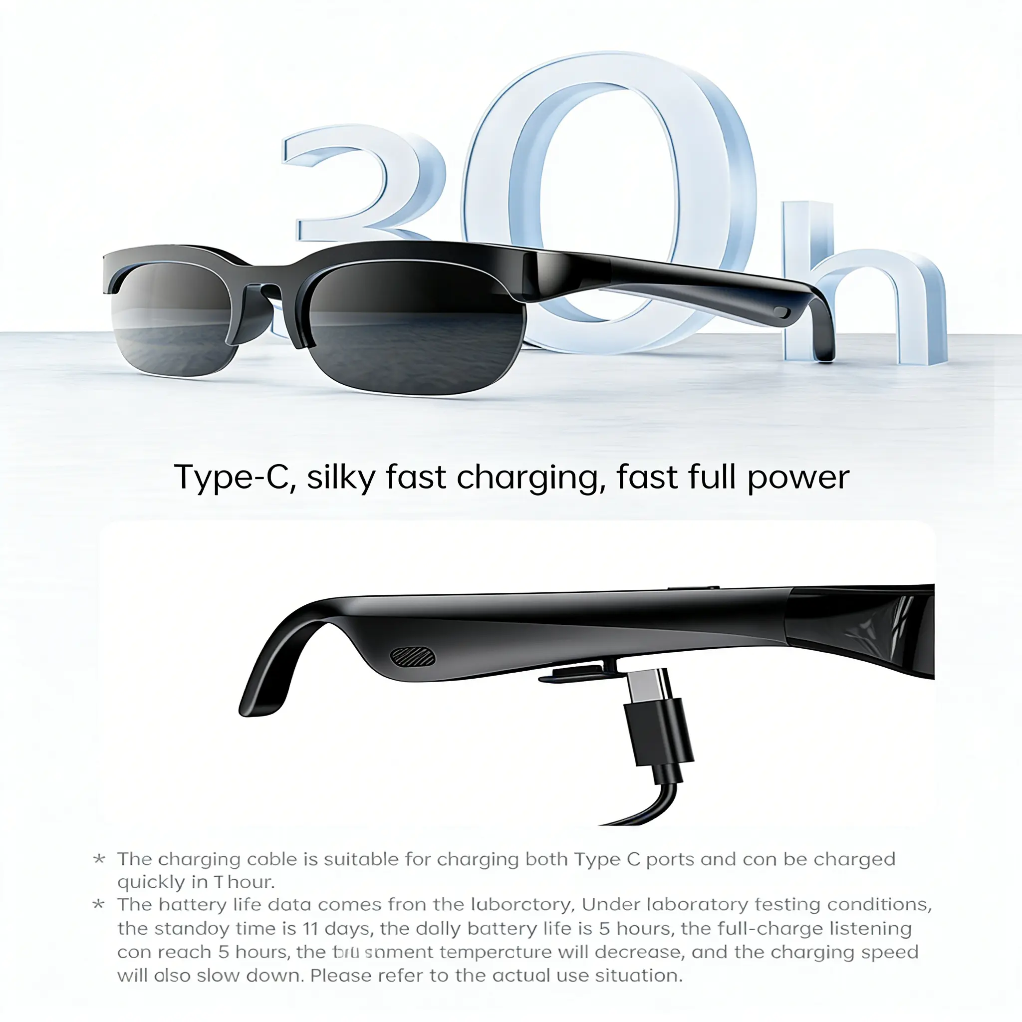 2026 Latest Smart Audio Glasses with Bluetooth, Open-Ear Speakers, Music & Hands-Free Calls, AI Voice Assistant,Translation for 164+ Languages Lightweight Wearable Tech Glasses for Men & Women