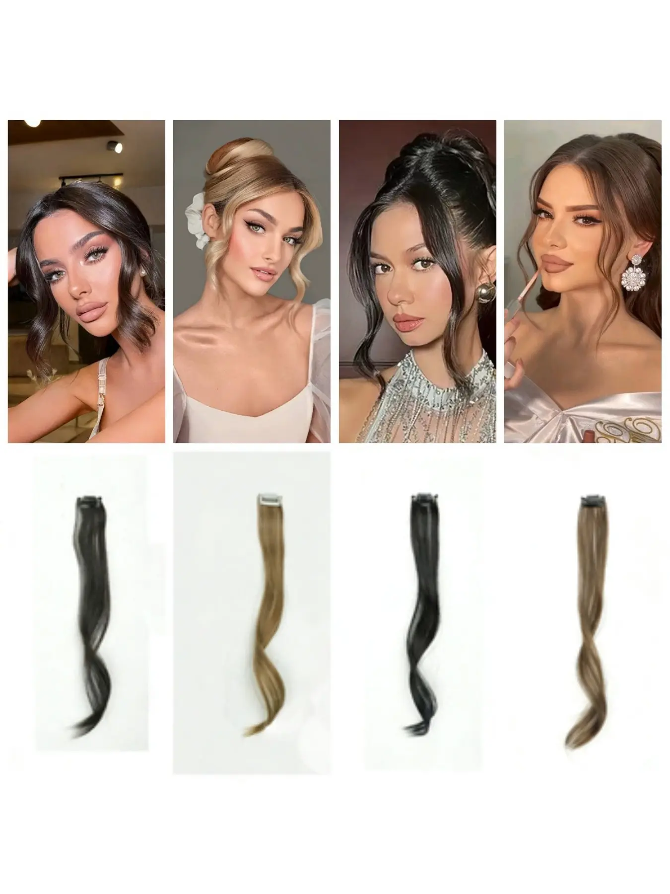 Four-Piece Hair Extensions Clips Set, Roman Four-Piece Curly Hair Extensions, Natural Realistic Princess Curl Wig, Suitable for Daily Wear