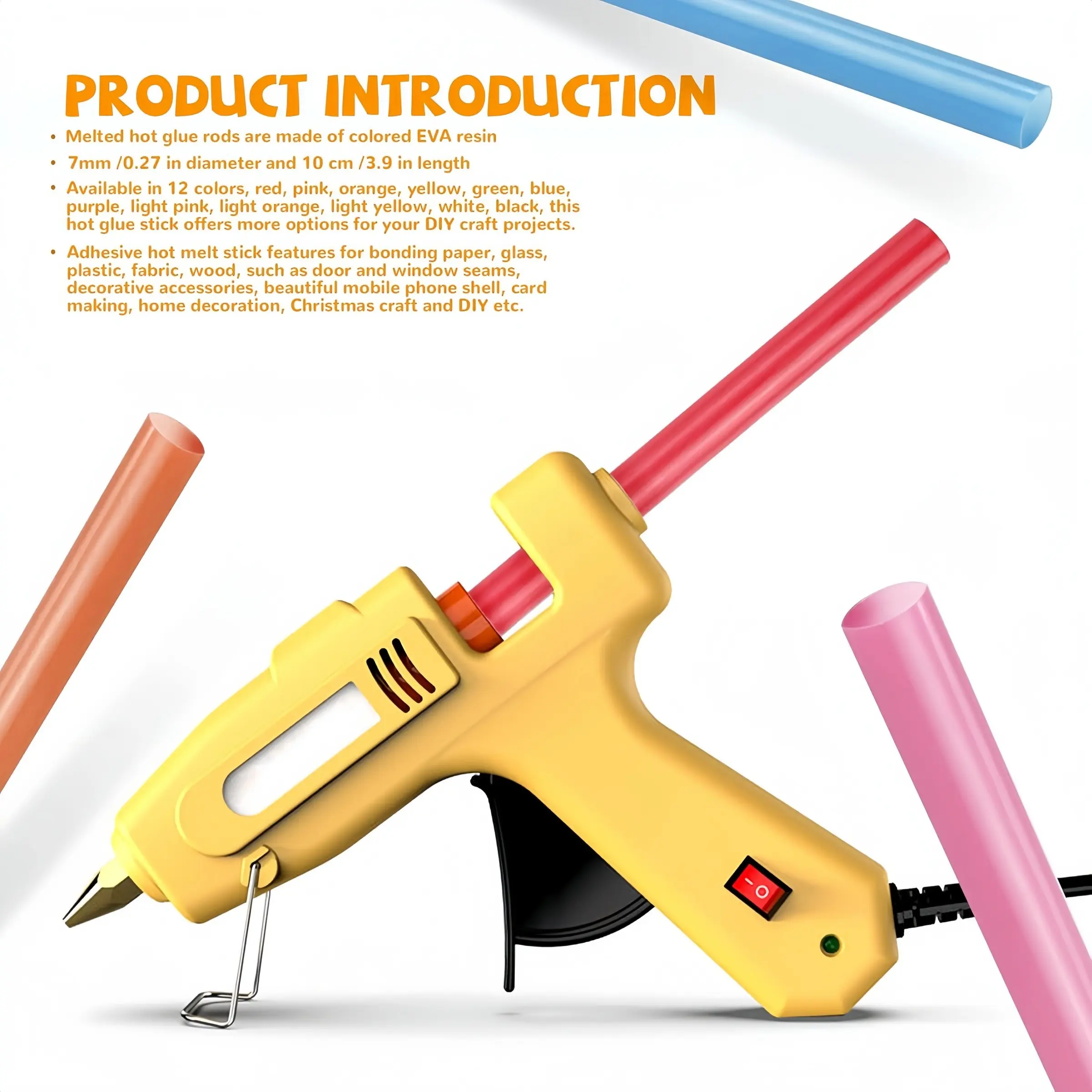 【Color Variety】: Includes 50 colorful hot melt glue sticks, perfect for adding vibrant touches to any project.