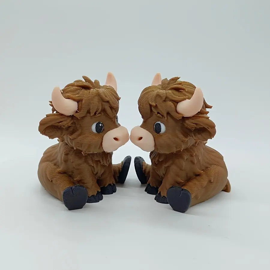 【3D Printed Detail】: Features intricate 3D printing details capturing the charm of a sitting highland cow statue.