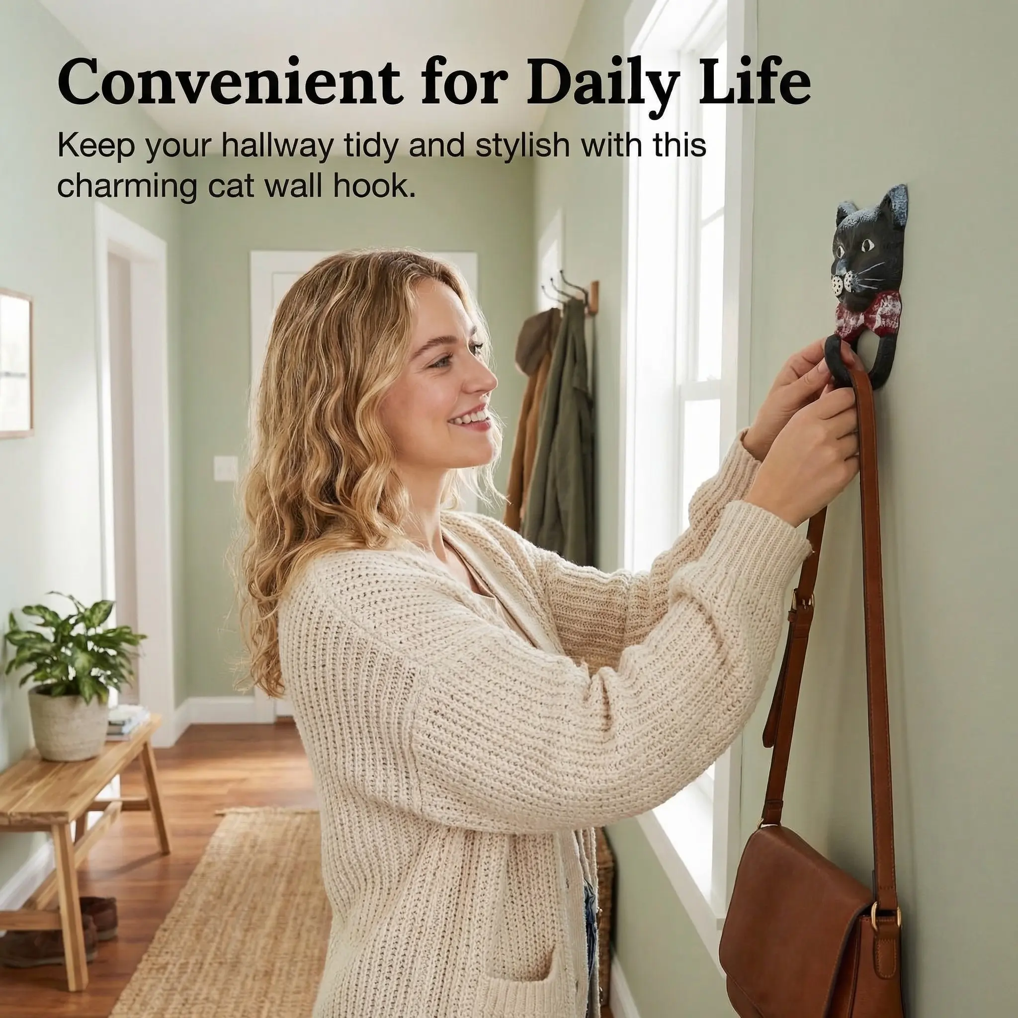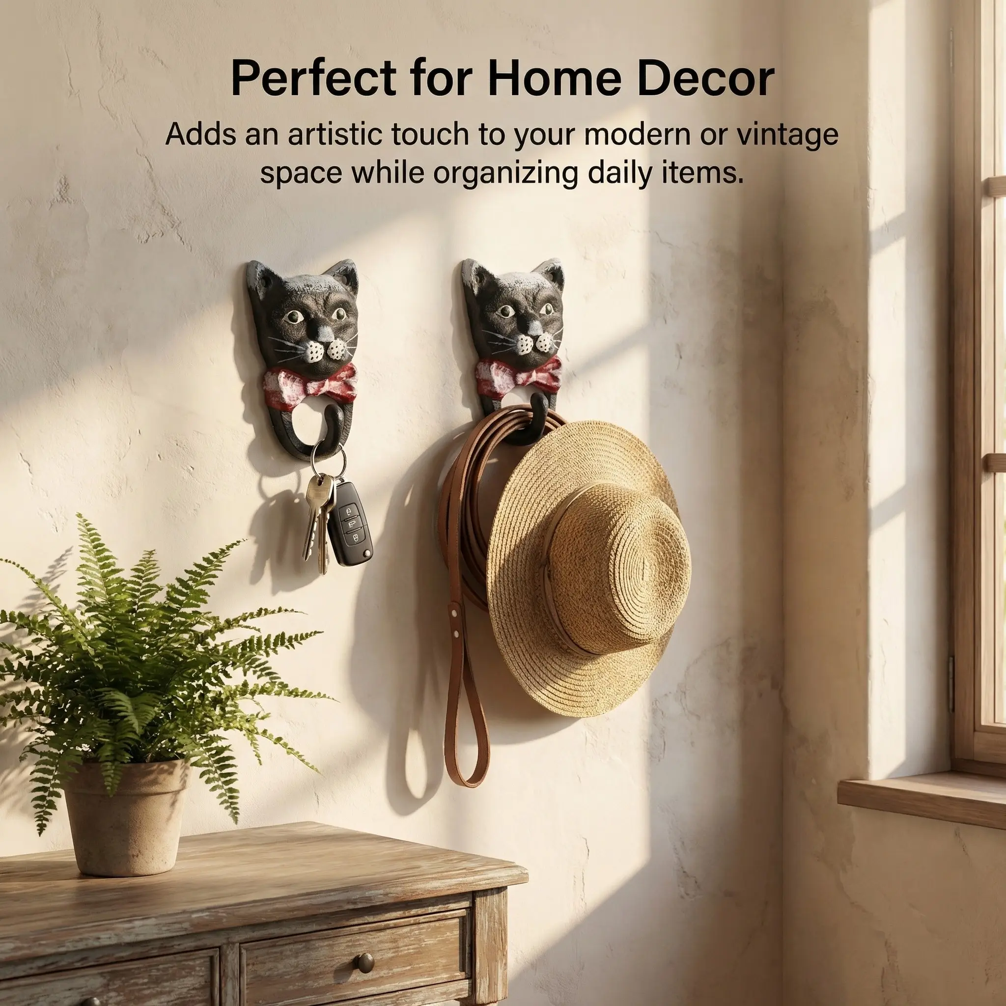 【Cat hook shape】: Features a unique cat-shaped design adding charm to any entryway decor.