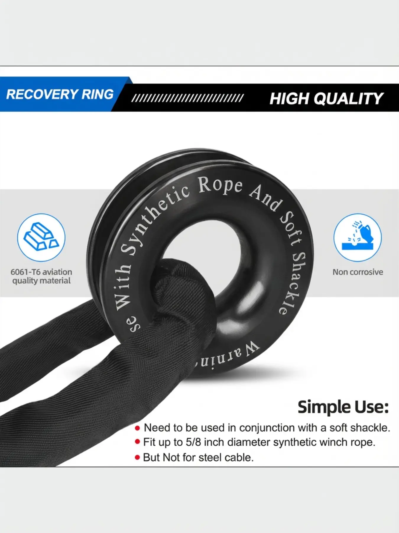 High quality material, T6 6061 aviation grade aluminum winch recycling ring, will not corrode, rust or rattle like traditional traction gears.