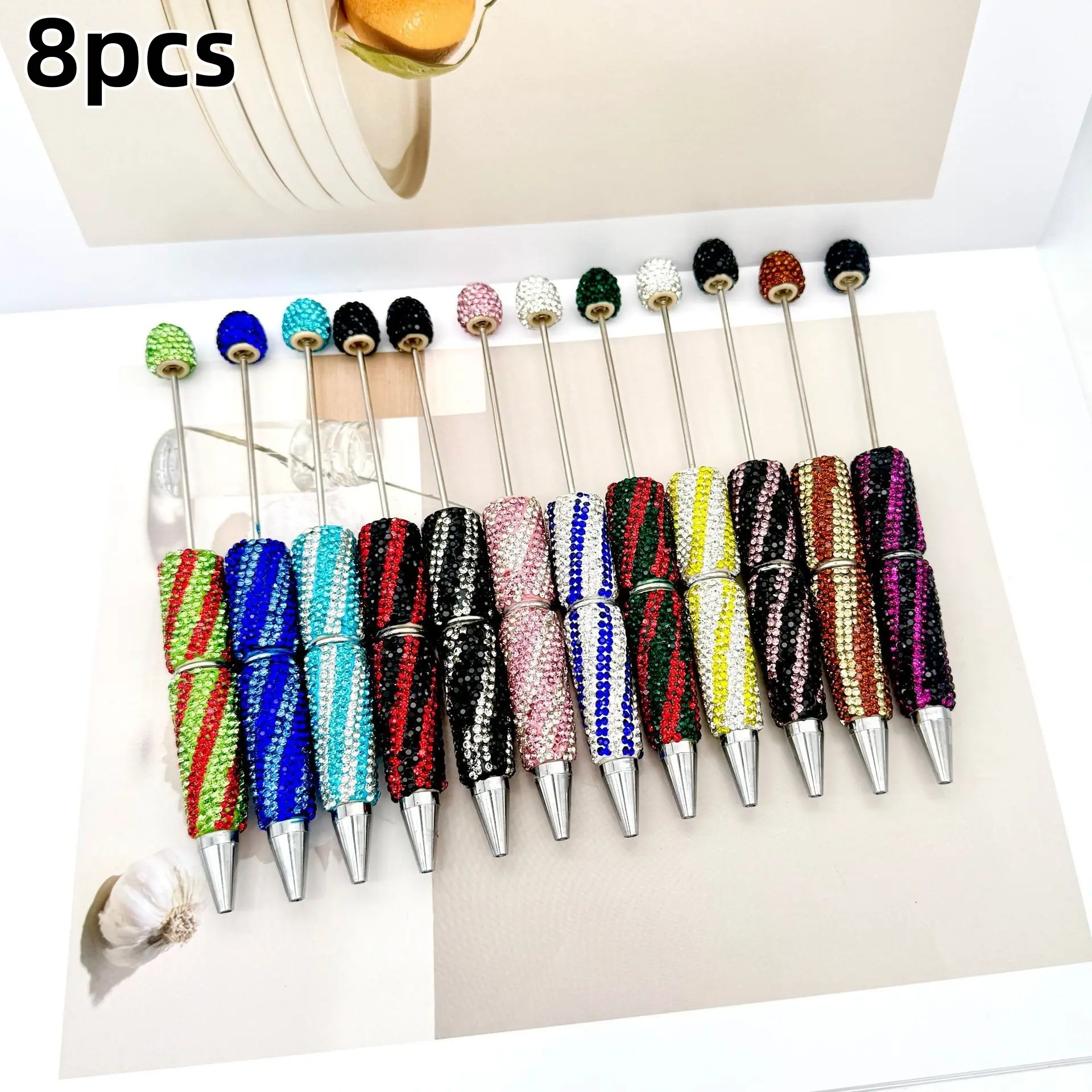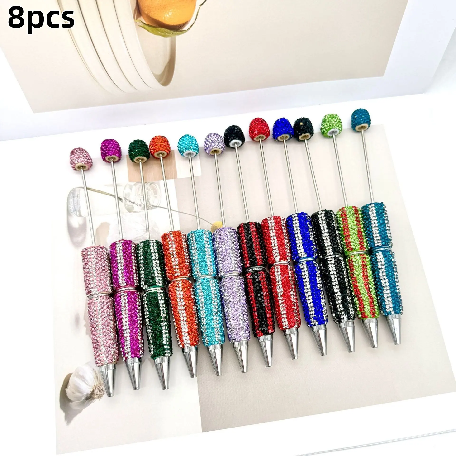 8-Pack Gradient Diamond Bead Pens, Office Writing Supplies, Holiday Party Favors, DIY Craft Round Ballpoint Pens, School Stationery