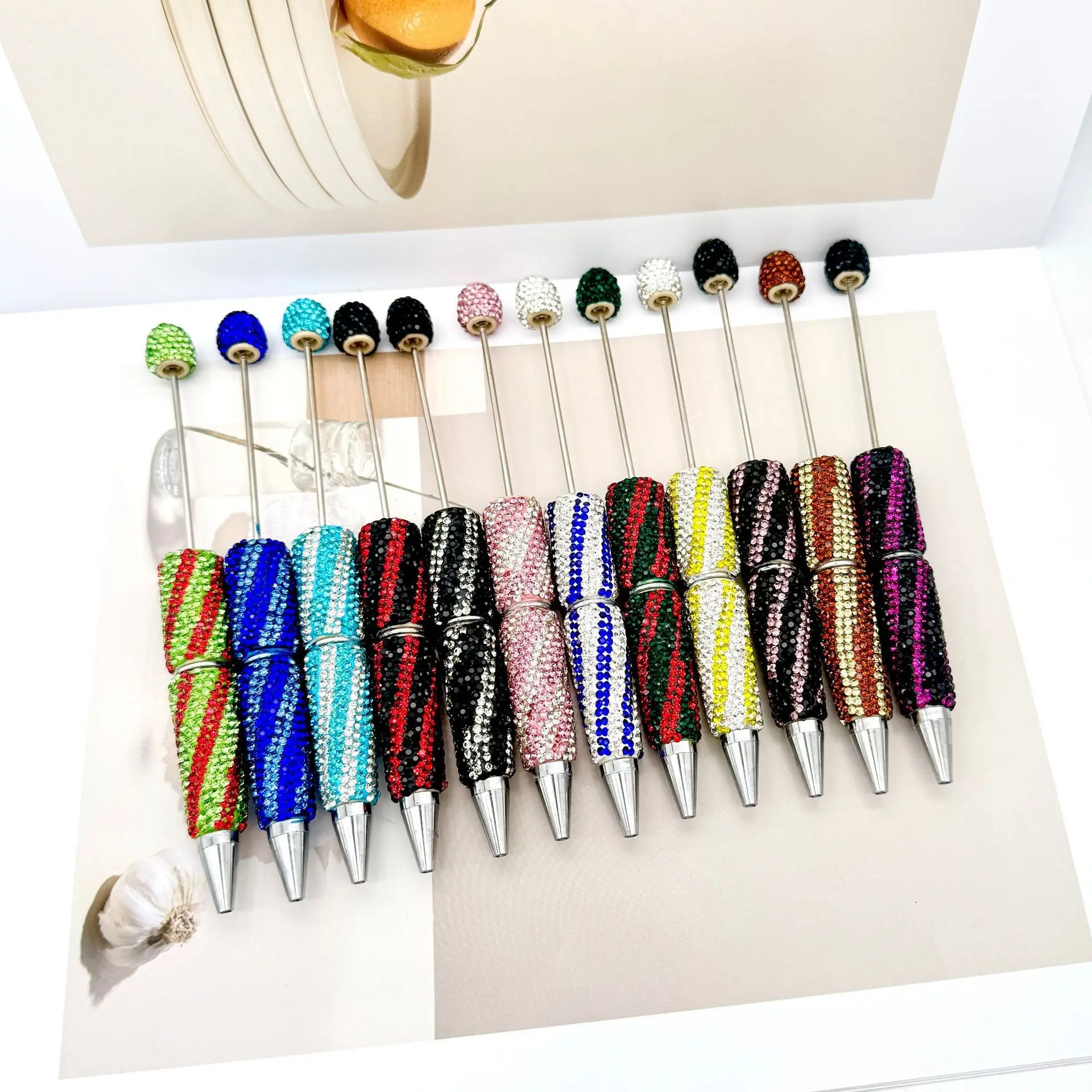 Striped Diamond Beaded Pen Set, Multi-Color Zebra Pattern Artificial Diamond Full Drill Round Ballpoint Pens, High Aesthetic DIY Jewelry Making