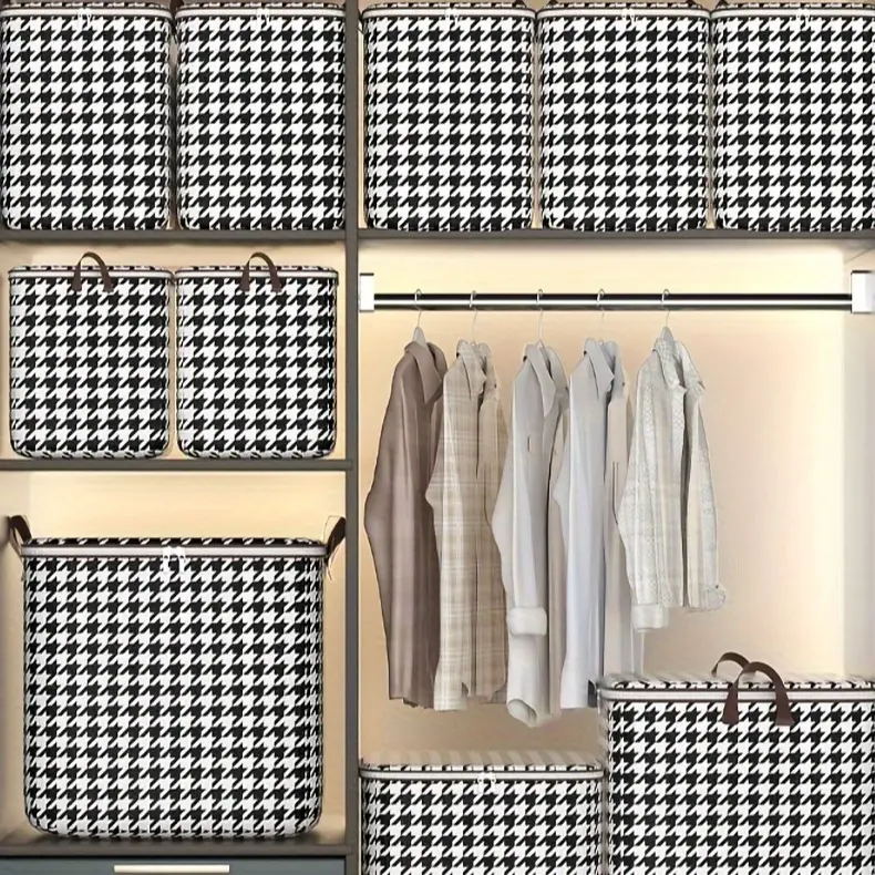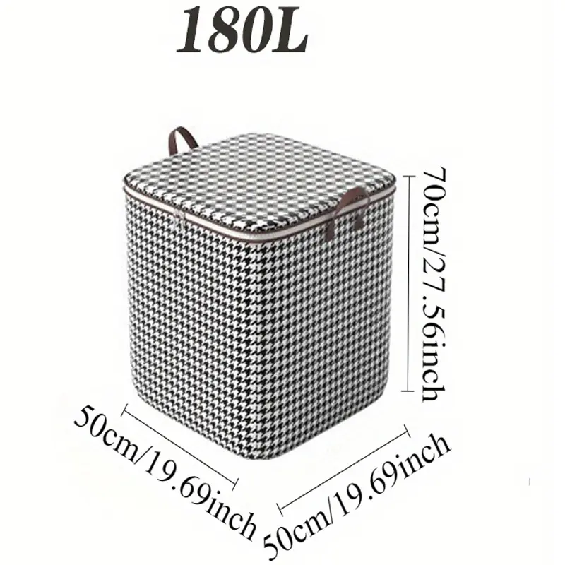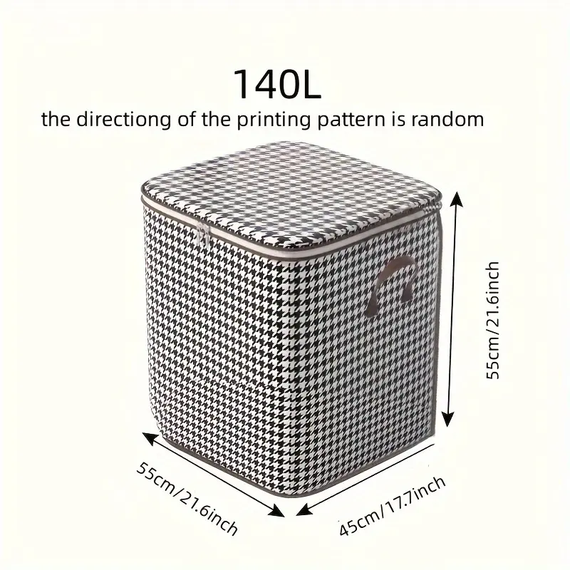 3Pcs Mixed Set, 100L 140L 180L, Stylish Foldable Zippered Storage Bags, Travel Organizer, Large Capacity, Portable, Moisture-Proof Non-Woven Fabric Solution, Houndstooth Print