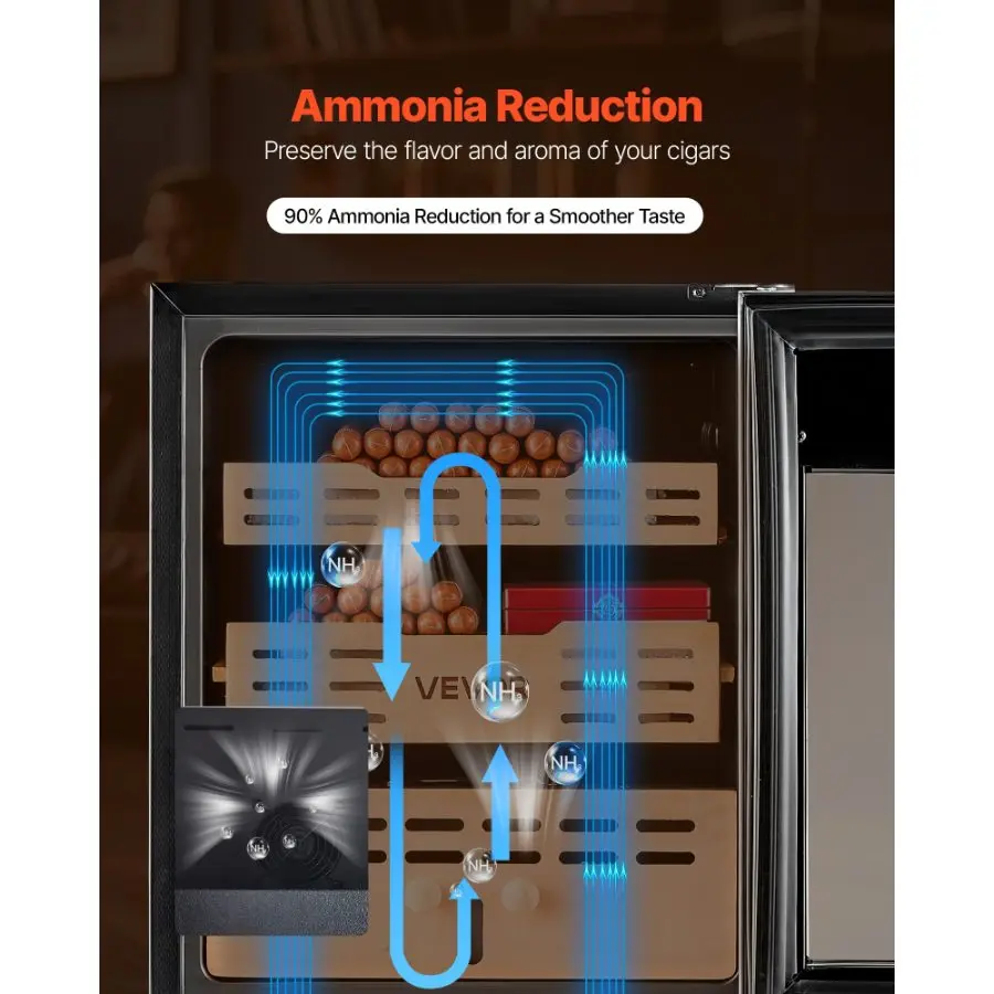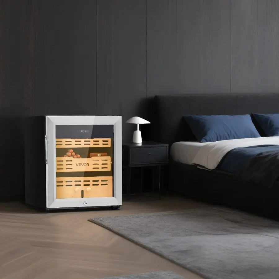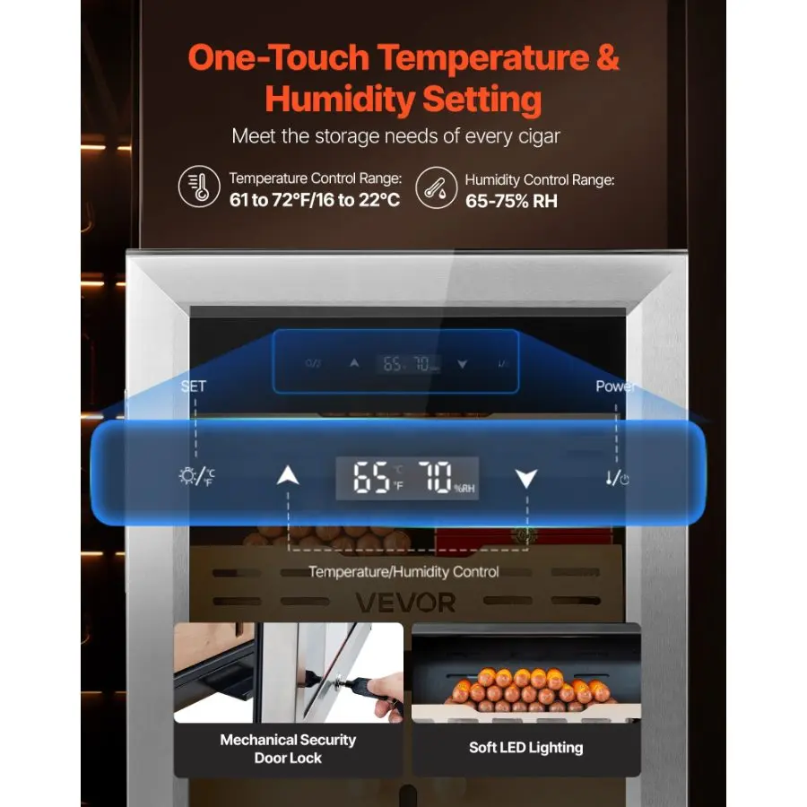 VEVOR Electric Humidor, 50L, 300 Counts Electric Cigar Humidor Cabinet with Compressor Cooling, Constant Humidity Temperature Control, Spanish Cedar Wood Shelves Drawers, 2 Layers, for Household