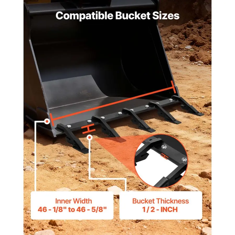 VEVOR Bucket Tooth Bar, 46 in Heavy Duty 5 Teeth Tractor Bucket Bar for Loader Tractor Loader Skidsteer, 4560 lbs Load Capacity, Bolt On Teeth Bars for Buckets Protection Efficient Soil Excavation