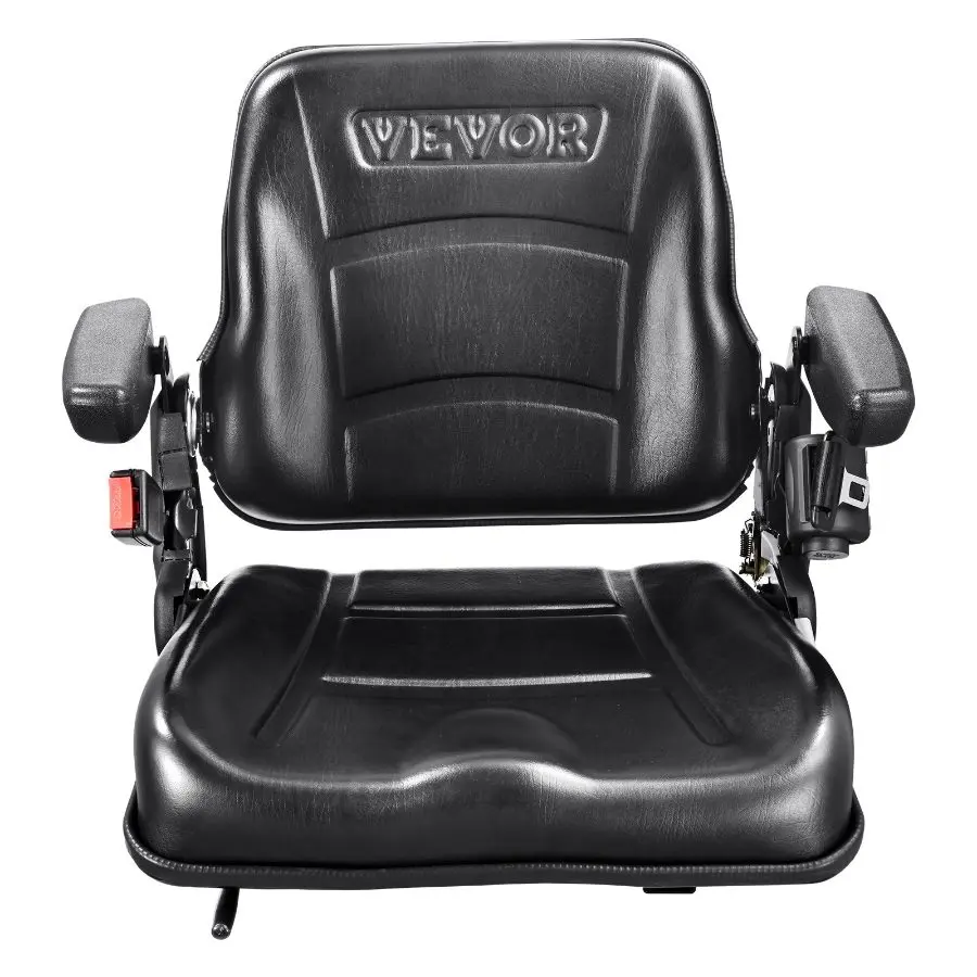 VEVOR Universal Forklift Seat, Fold Down Tractor Seat with Adjustable Angle Back, Micro Switch, Seatbelt and Armrests, 6.3-13.4 inch Slot Tractor Seat for Tractor Loader Excavator