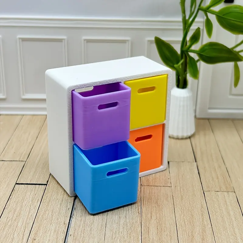 Miniature Dollhouse Cabinet with Four Shelves, Designed for Collectible Figurines. This Plastic Storage Unit Features Four Tiers And Is Suitable for Dollhouses, Providing Scale Furniture for Decorating Mini Rooms And Storing Miniature Items
