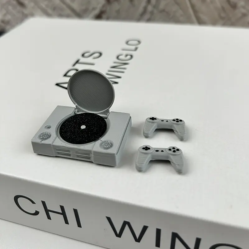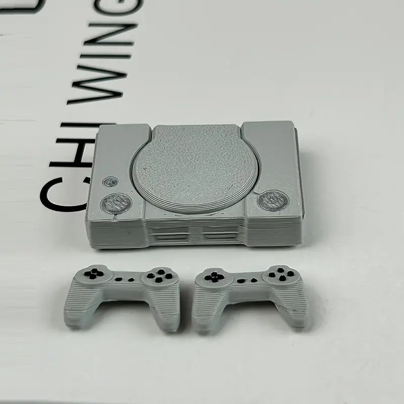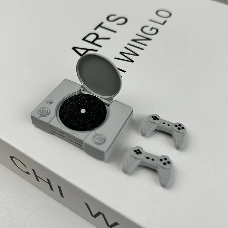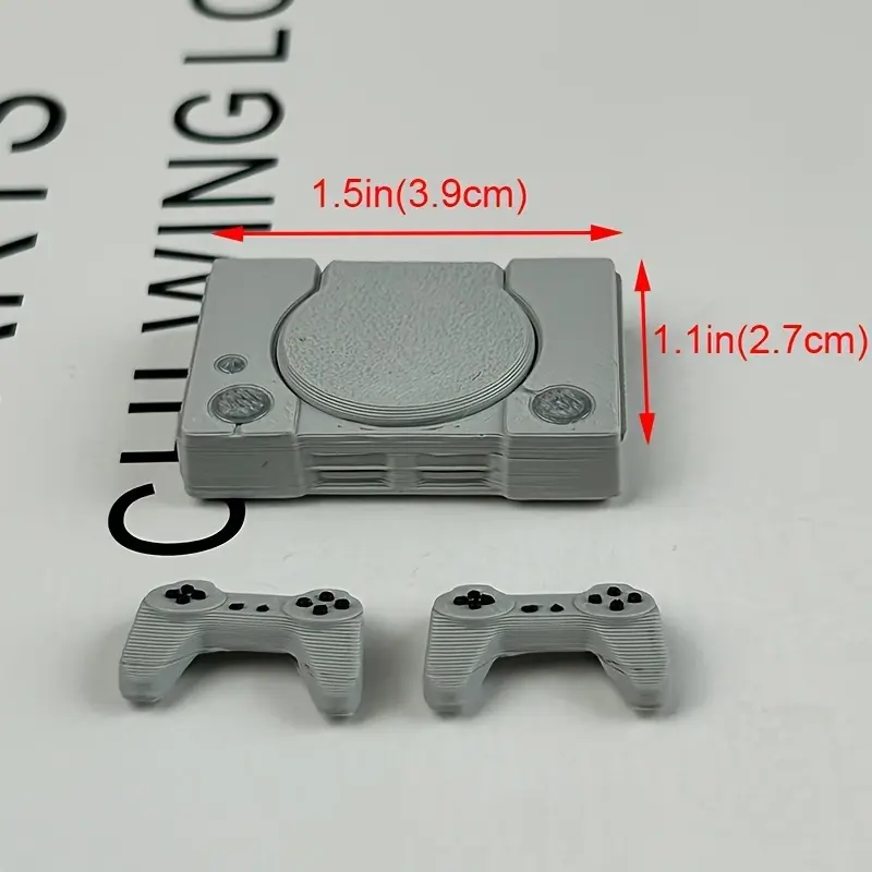 1 set of miniature game consoles, retro PS model ornaments, flip-top game console model with controller set