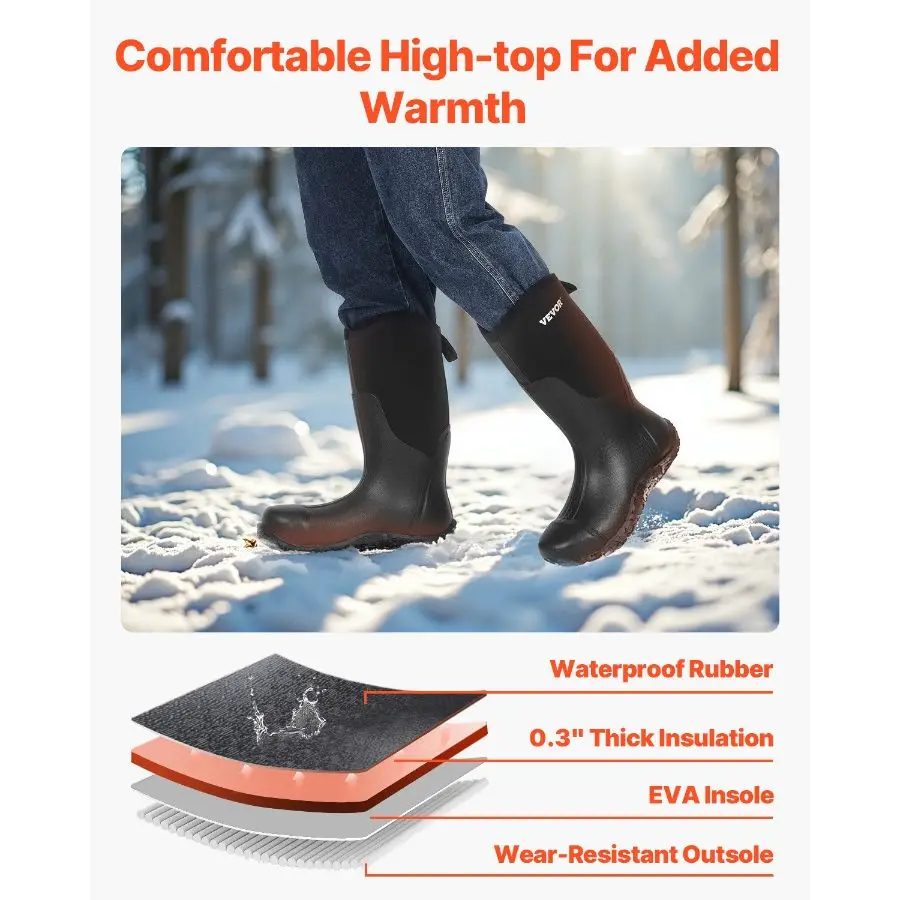 VEVOR Men's Steel Toe Rubber Boots, Protective Footwear, Waterproof Rain Fishing Boots, Outdoor Non-Slip Work Shoes, Lightweight and Durable, for Manufacturing, Construction, Farming, Size 12 US