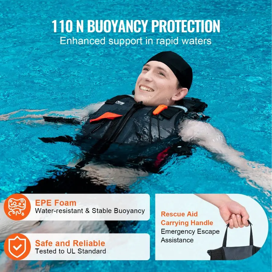 VEVOR Life Vest for Watersports (PFD), Life Jacket with Waterproof Nylon 110N Buoyancy, Life Vest/Jacket for Any Water Activity-Fishing, Kayaking, Surfing and More, Men and Women XL