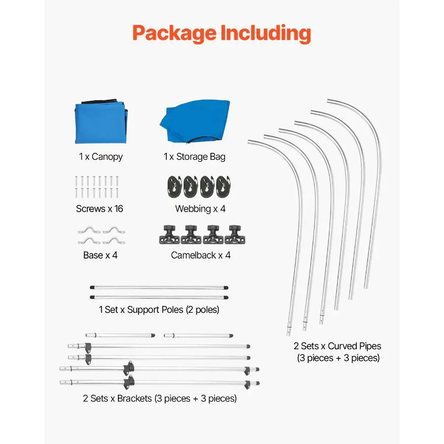 VEVOR 3 Bow Boat Bimini Tops, 600D Polyester Canopy with Aluminum Alloy Frame, Waterproof Sun Shade Boat Awning Canopy with Storage Bag, 2 Support Poles, 4 Straps, 6'Lx(54-60)Wx46H, Pacific Blue