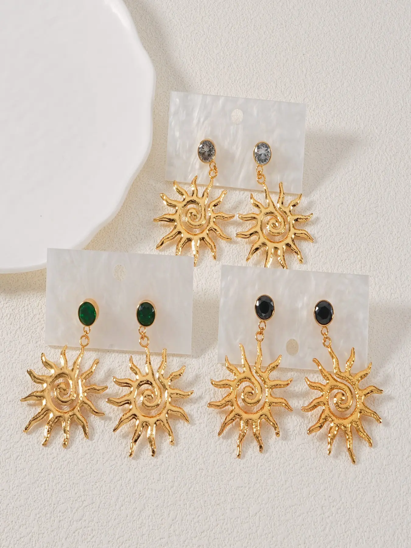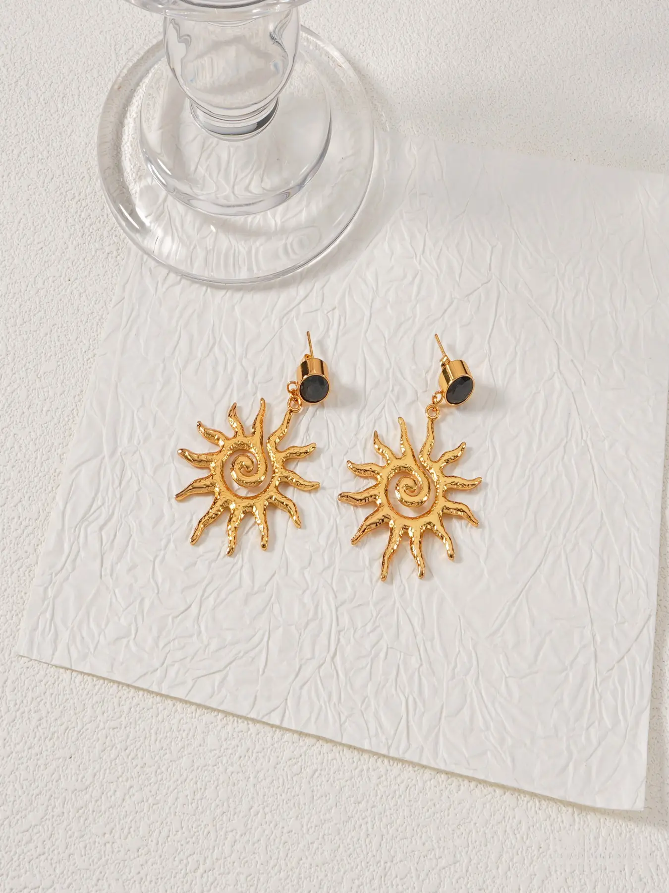 【Sun Pendant Design】: Showcases a unique sun pendant design, making these earrings stand out.