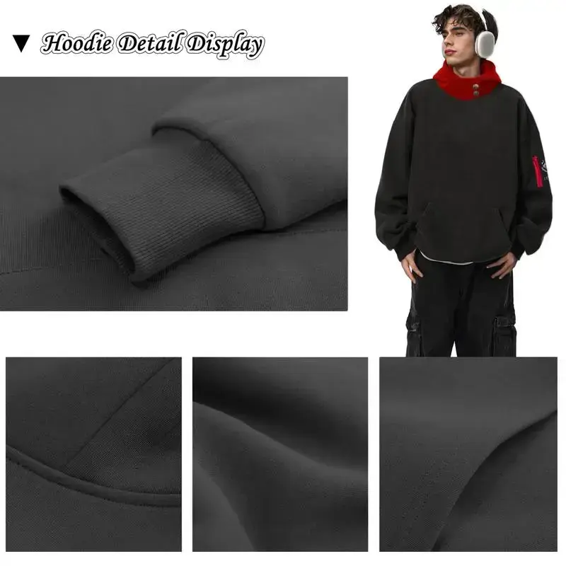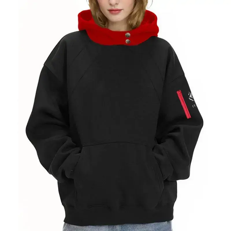 Size: S-3XL for your choice. Please check the size chart before ordering. If you have a strong body or like loose clothes, it is recommended to buy 1-2 sizes up Material: Made of polyester and cotton. Soft, skin friendly, comfortable and breathable. Hand wash, hang dry, not exposed to the sun, so that the clothes will last a long time Design: Long sleeved black hoodie with red hood, button detail is also highly reproduced. Ribbed cuffs and hem, it fits the body and locks in the temperature. Classic kangaroo pocket, stylish and casual Occasion: Suitable for all seasons. Suitable for cosplay, Halloween, Christmas, daily wear, home, sports, going out, travel, fitness and so on. Thegift for your family, friends, couples, classmates and yourself Service: If you have any problem, please askto solve it