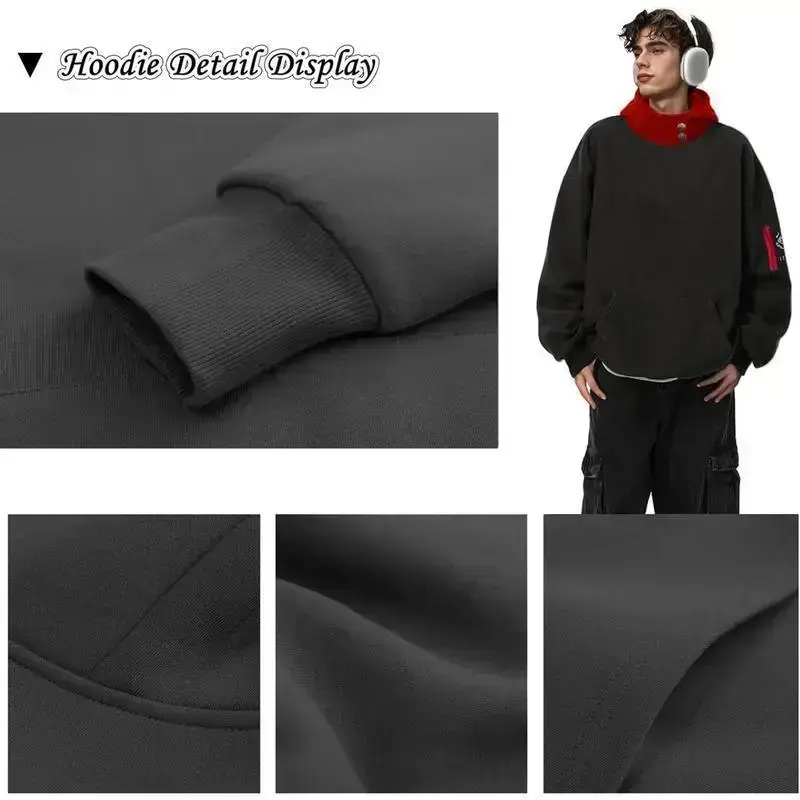 FAIABLE Men´s Hoodies Unisex Oversized Zip-Up Hoodie for Women Plain Acid Wash Long Sleeve Pullover Basic Minimalist Tops Heavyweight Fleeced Cotton Zipper Hoodie Vintage Casual Menswear Sweatshirts