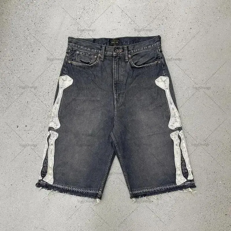Summer retro skeleton denim shorts sports casual shorts new couple wearing street street 55 pants 2025 Europe and America(Sheets)