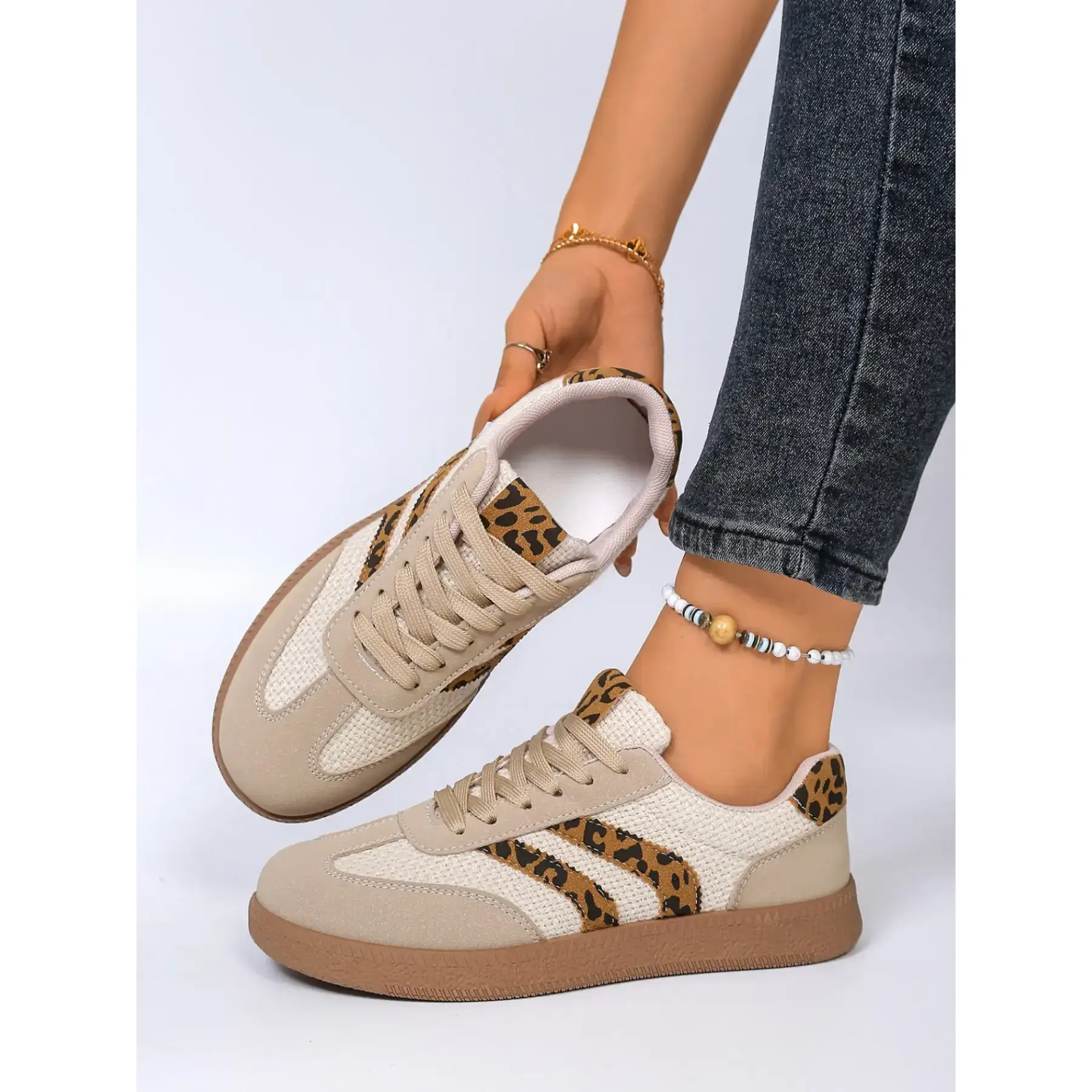Women's Spring Autumn New Style PU Textile Sneakers, Retro Fashion Breathable Comfort Casual Shoes, Thick Sole Anti-Slip Lightweight, Breathable Sports Sneakers(Sheets)