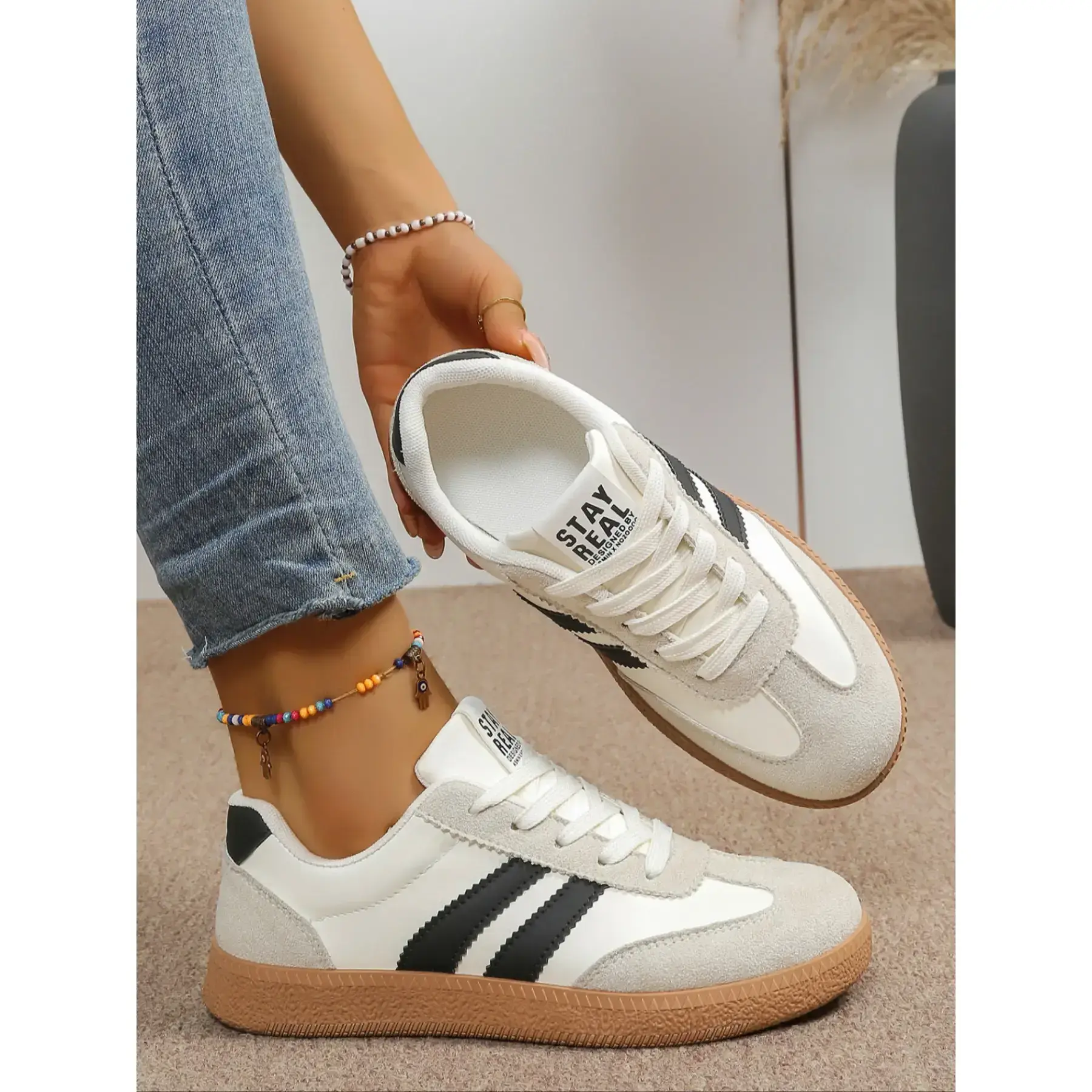 【Unique Upper Material】: Crafted with breathable textile, ensuring airflow while maintaining durability for daily wear. 【Chunky Sole】: Equipped with a thick rubber sole that enhances grip and reduces slipping on various surfaces. 【Seasonal Versatility】: Designed for all seasons, these shoes adapt well to changing weather while providing steady support. 【Eye-Catching Patterns】: Features eye-catching pattern options like argyle and colorblock, adding visual interest to your footwear. 【Secure Fit】: Designed with a medium shoe width for a snug fit that accommodates various foot shapes without discomfort.