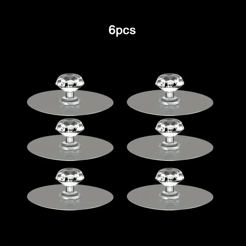6pcs transparent glass self-adhesive crystal handles, decorative furniture hardware with hooks, for home and kitchen cabinets
