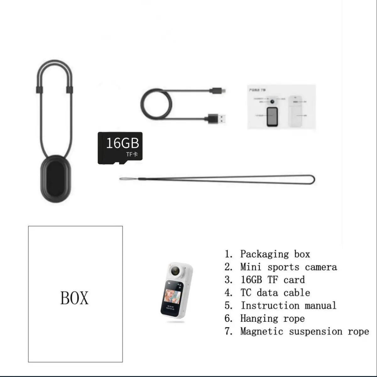WIXUN-1080P mini magnetic thumb sports camera, 180 ° rotating camera, 1.47-inch IPS high-definition display screen, equipped with 16GB TF card, suitable for daily photography/videography, outdoor activities, law enforcement scenes