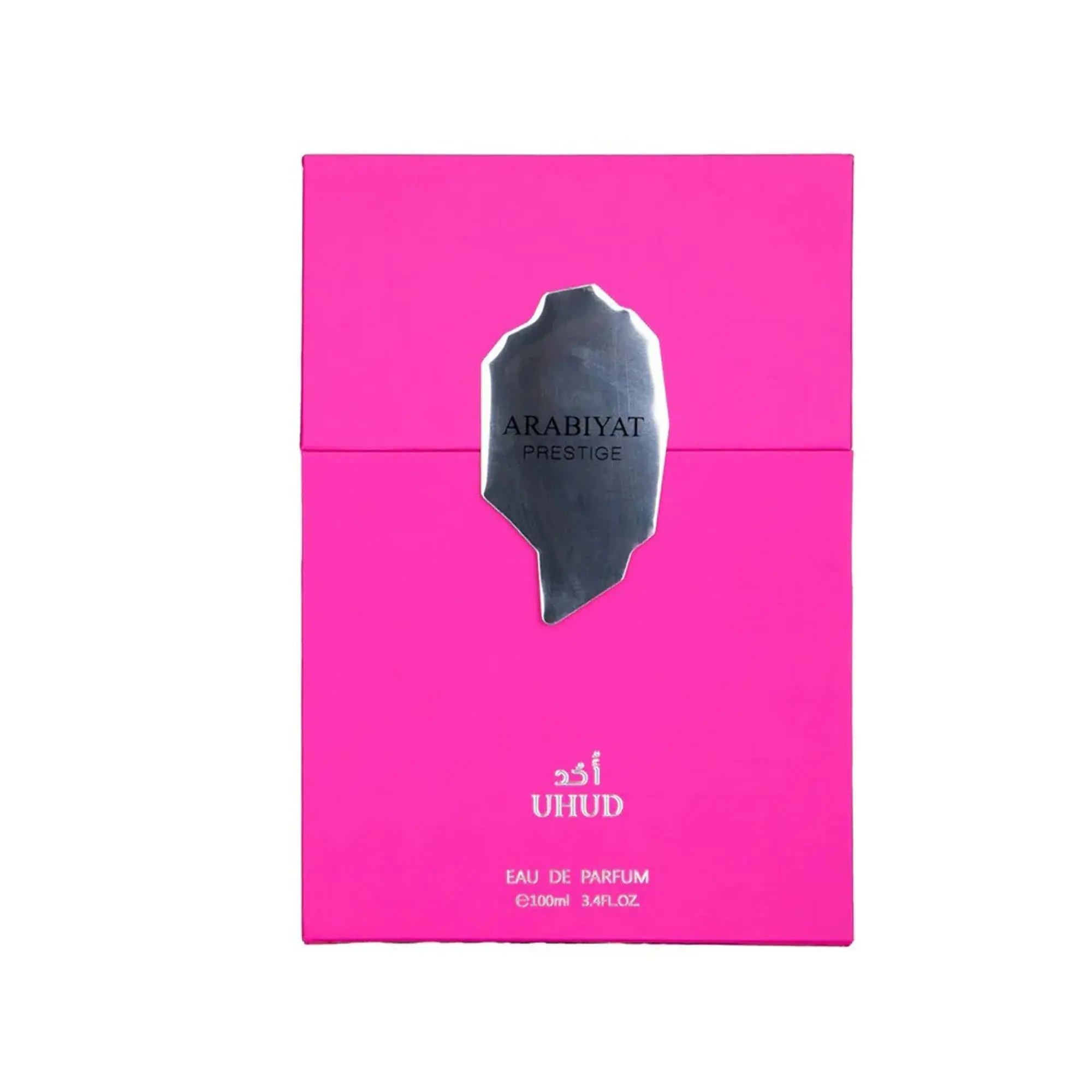 Enjoy a rich and enchanting scent with Uhud Women EDP by Arabiyat Prestige. It opens with a delightful blend of red fruits, rose, and caramel, creating a sweet and irresistible introduction. The heart unfolds with warm notes of tonka, honey, and raspberry, adding depth and a touch of indulgence. As it settles, a smooth base of musk, vanilla, and amber leaves a sensual and long-lasting trail. This elegant fragrance comes in a 100ml (3.4 oz) bottle.
