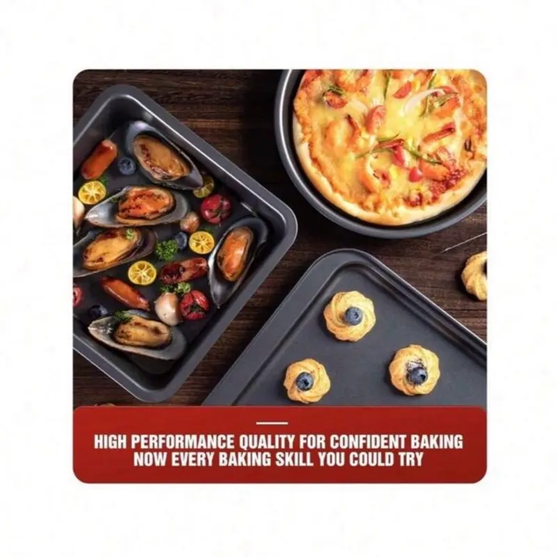 7-Piece Non-Stick Carbon Steel Baking Pan Collection for Easy Cooking and Baking - Bakeware