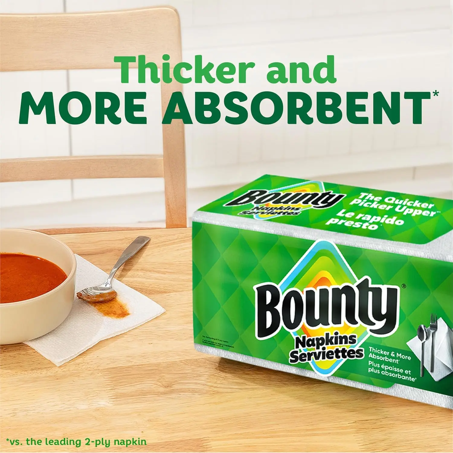 Don't let mealtime messes get in the way of your family meals Bounty Napkins pick up messes quicker* so you can get back to enjoying time with your family. Whether it’s saucy wings or spaghetti splashes, Bounty Napkins will keep you covered through the whole meal. The 12.1” x 12” napkins are the perfect size to get your family through messes and spills. From family dinners to big celebrations, Bounty Napkins are designed to hold up for any occasion. They’re tough on those messy meals so they don’t mess with you. *vs. Leading ordinary brand.