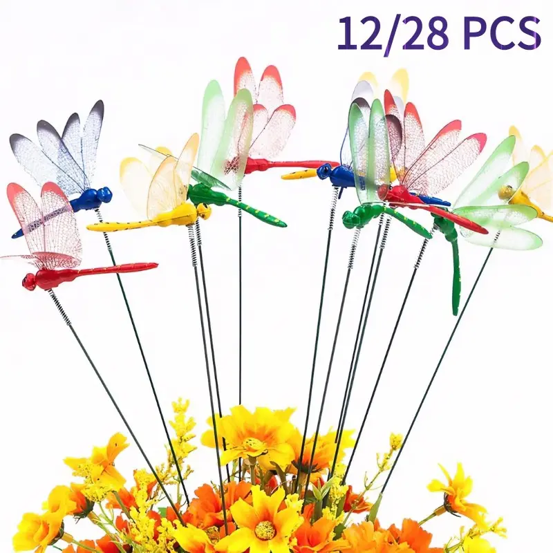 12/28 PCS 3D Dragonfly Garden Decor, Dragonfly Stakes Outdoor Art, Fly Deterrent & Bird Scare, DIY Lawn Patio Aesthetic Ornaments, Unique Home & Garden Gifts