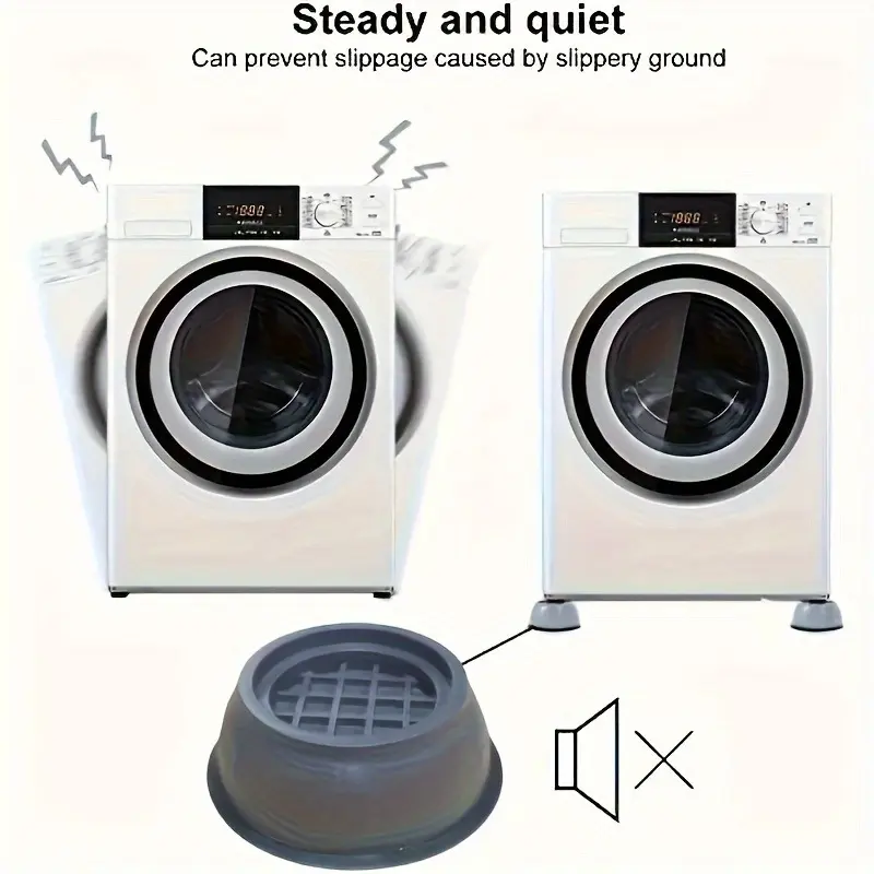 5. 4pcs Shock-Absorbing Washing Machine Stabilizing Pads - Anti-Slip, Noise Reducing, Durable Plastic with Raised Edges for Secure Fit, Appliance Leveling for Home & Bathroom Use, Washing Machine Accessories, Rounded Pad Design, Highquality Construction