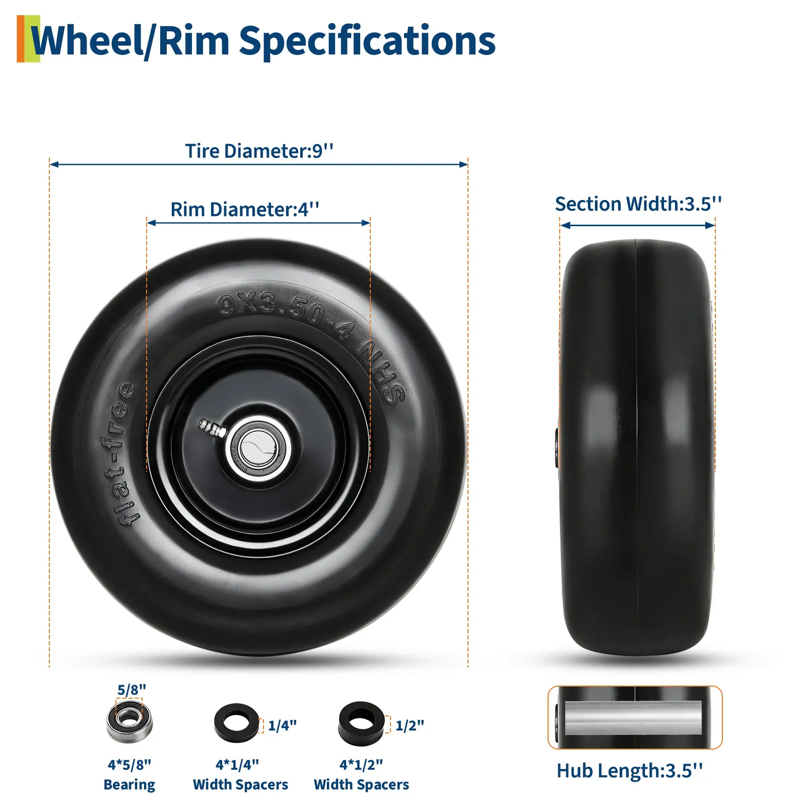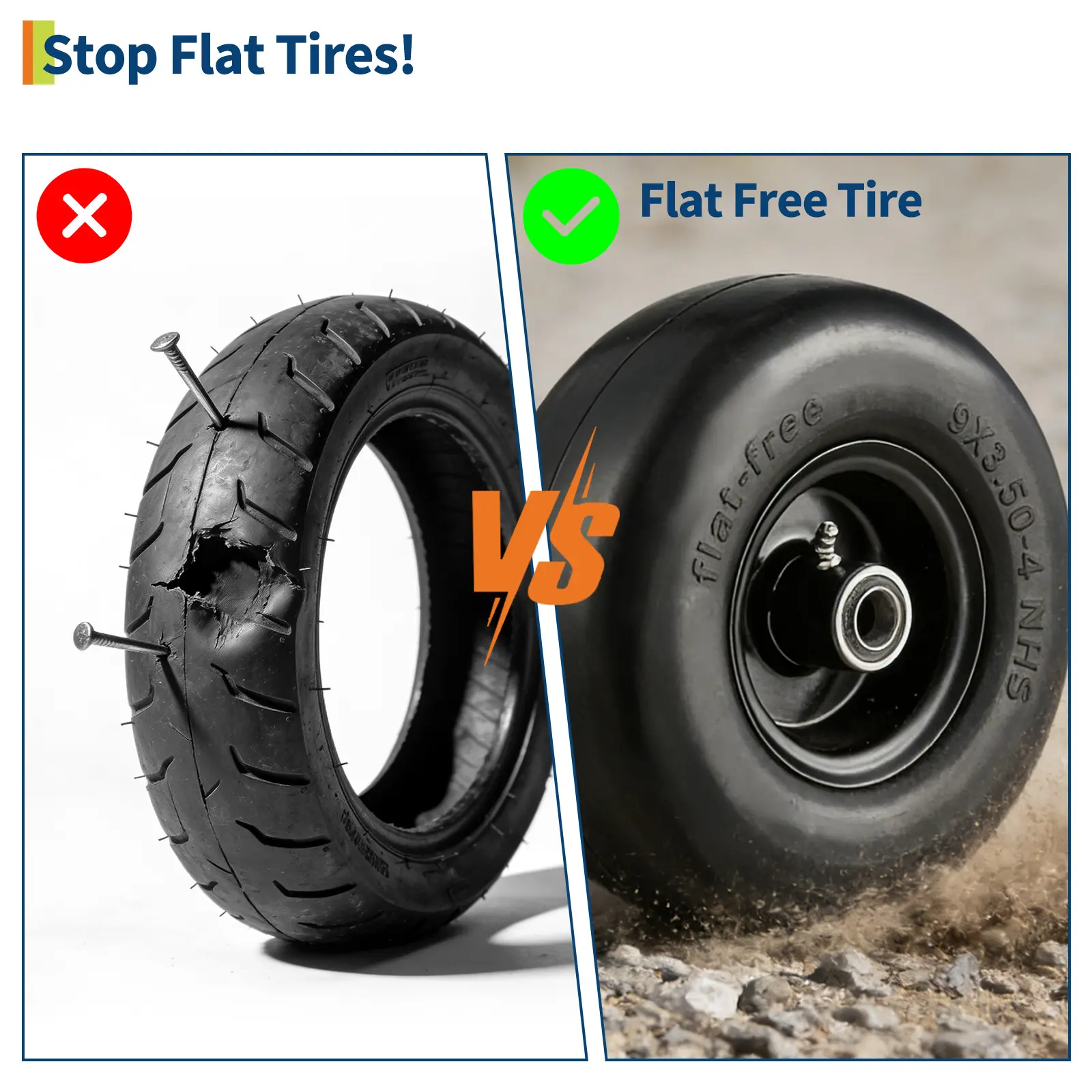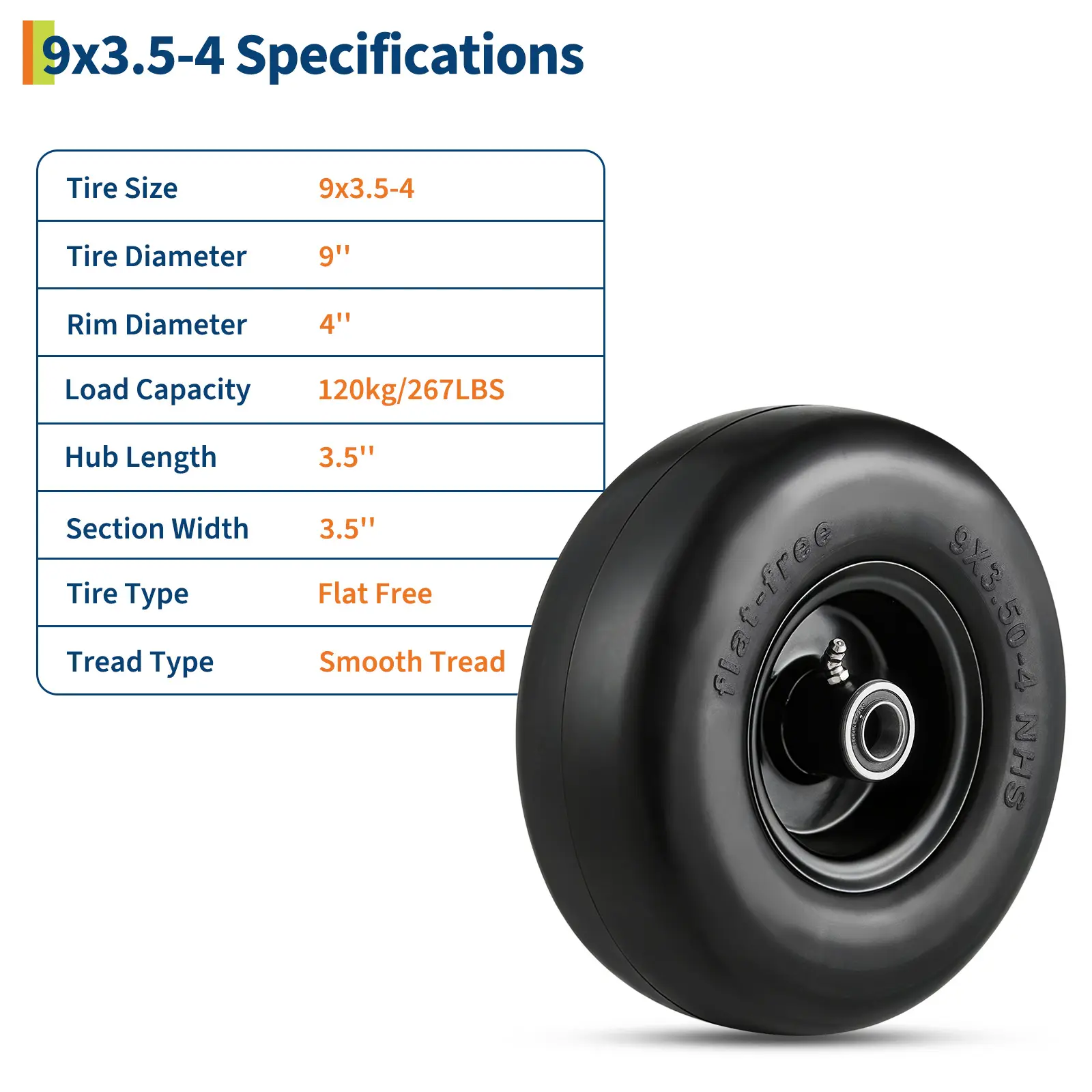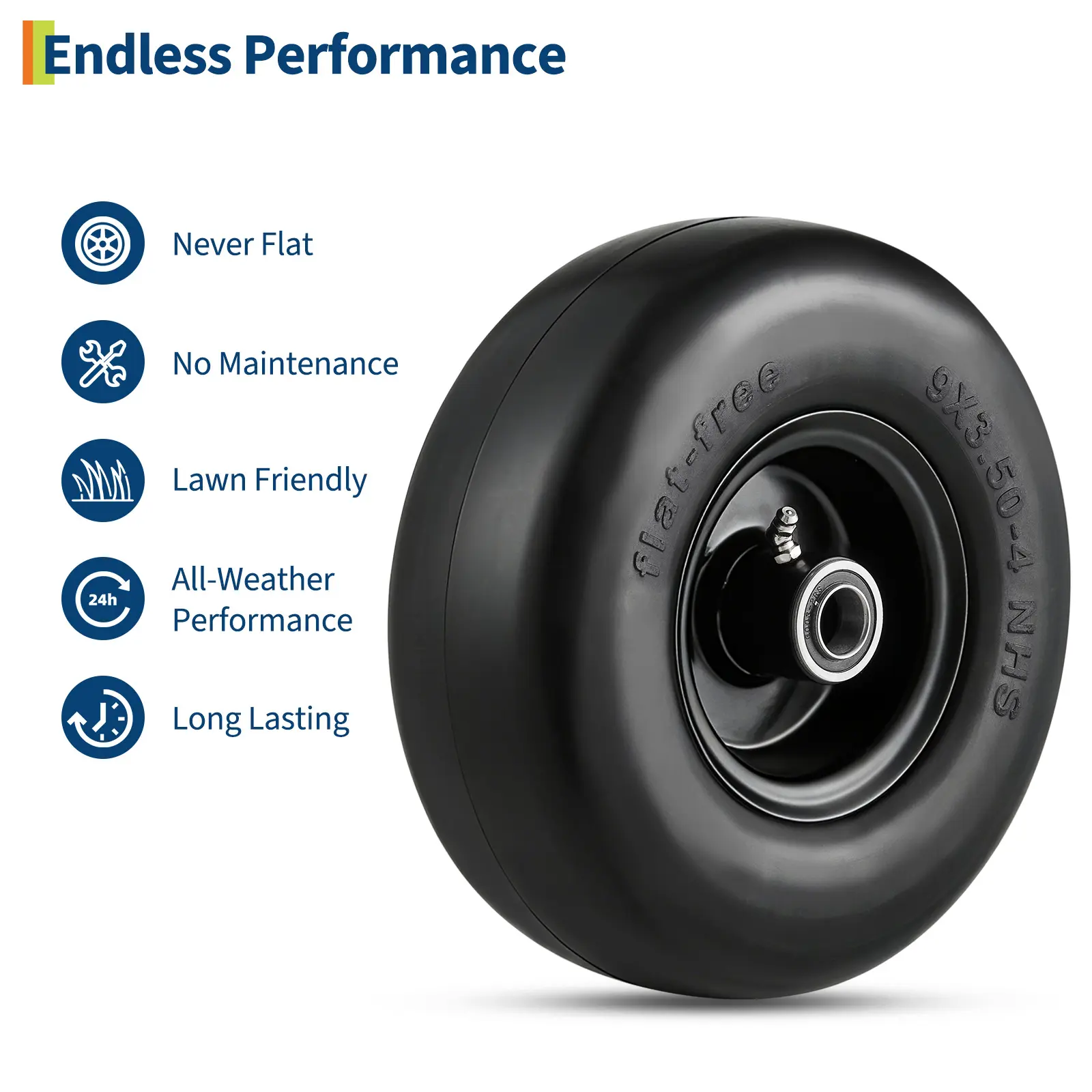 Choose our 9x3.50-4 flat free tires for a maintenance-free, long-lasting upgrade to your outdoor equipment. Enjoy smooth and efficient yard work every time!