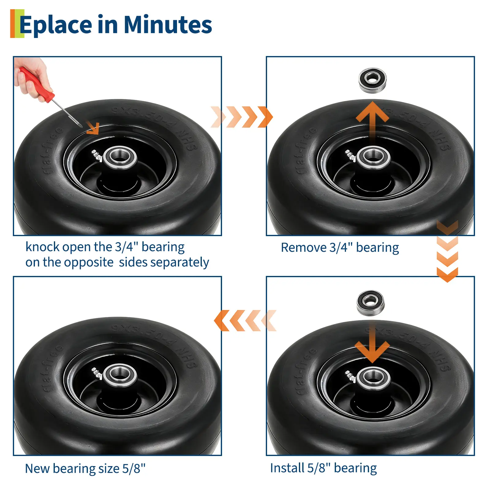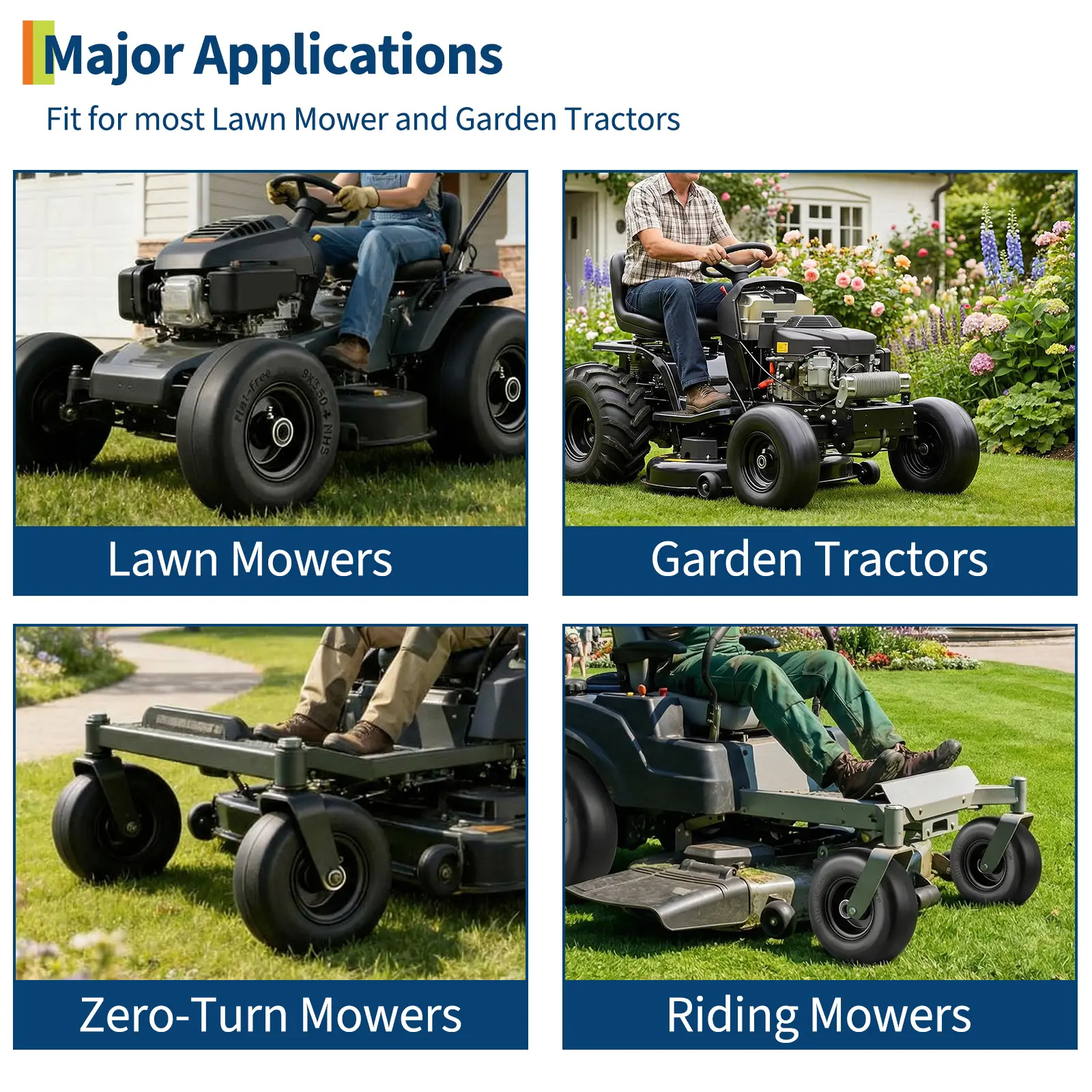 ·Easy Installation: Comes with both 3/4" and 5/8" bushings/adapters, allowing for a perfect fit on most standard garden equipment wheels.