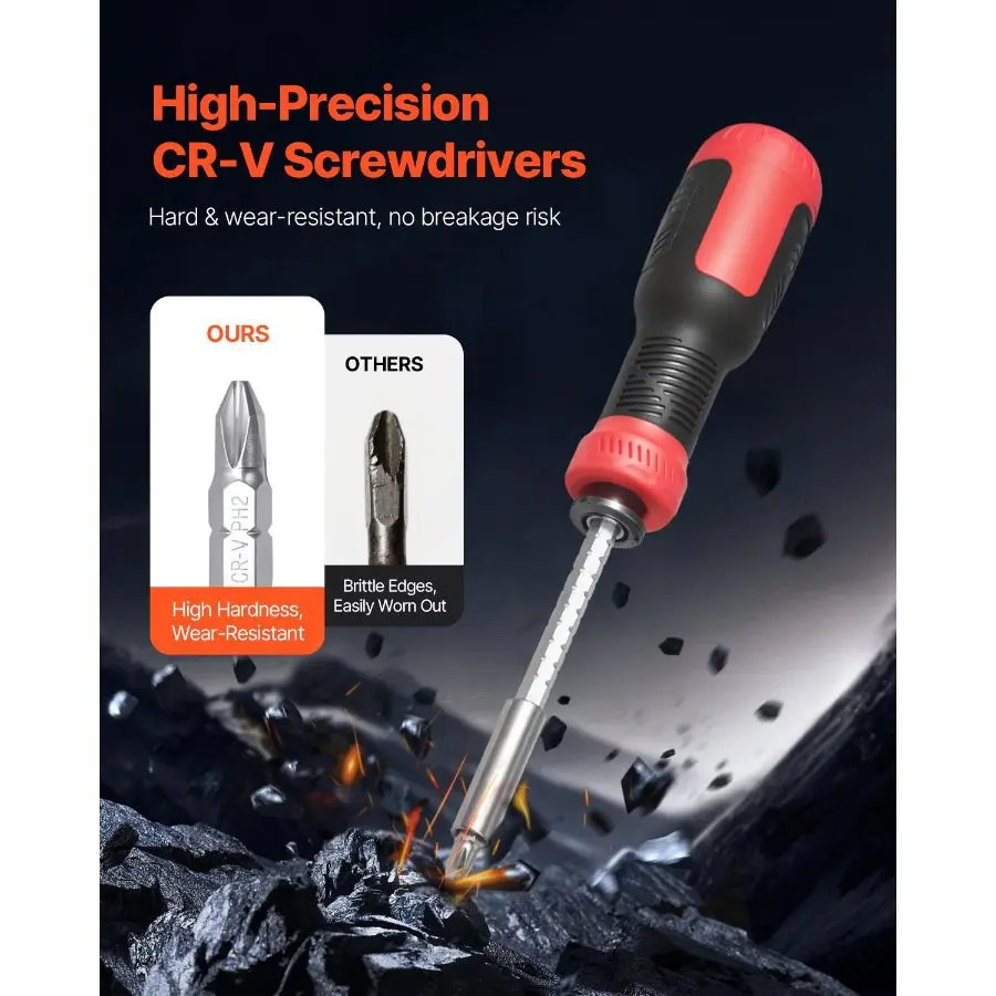 This 13-in-1 screwdriver kit includes Phillips, slotted, Torx, hex, and square bits made from durable CR-V steel. The magnetic extension rod holds screws firmly. The handle features built-in bit storage and a non-slip grip. Suitable for home appliance repair, furniture assembly, and small component disassembly.